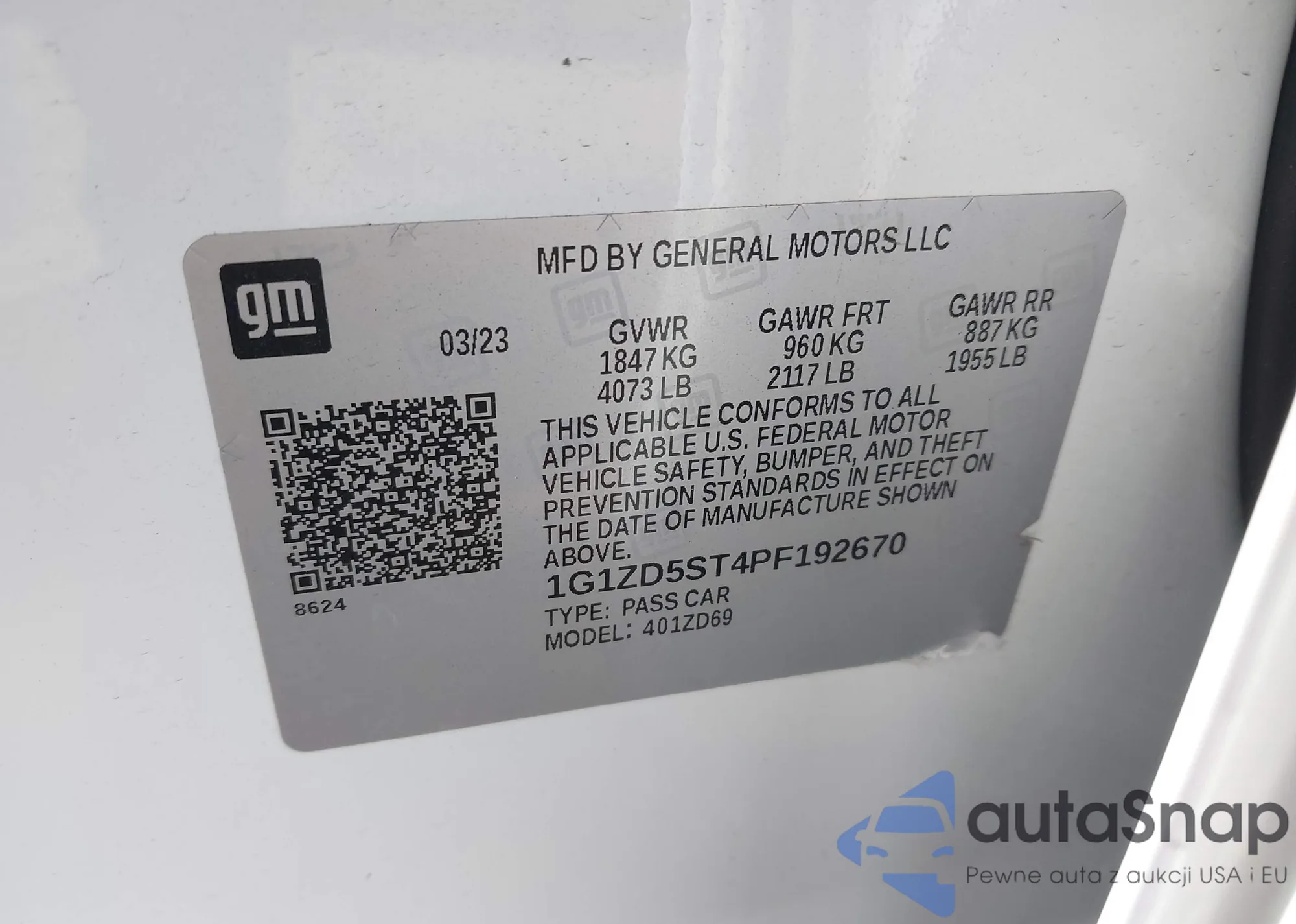 VIN: 1G1ZD5ST4PF192670