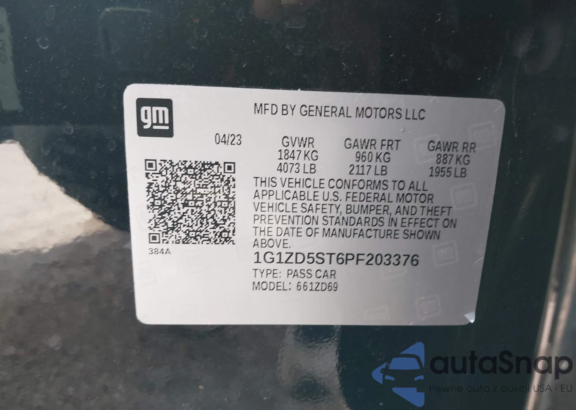 VIN: 1G1ZD5ST6PF203376