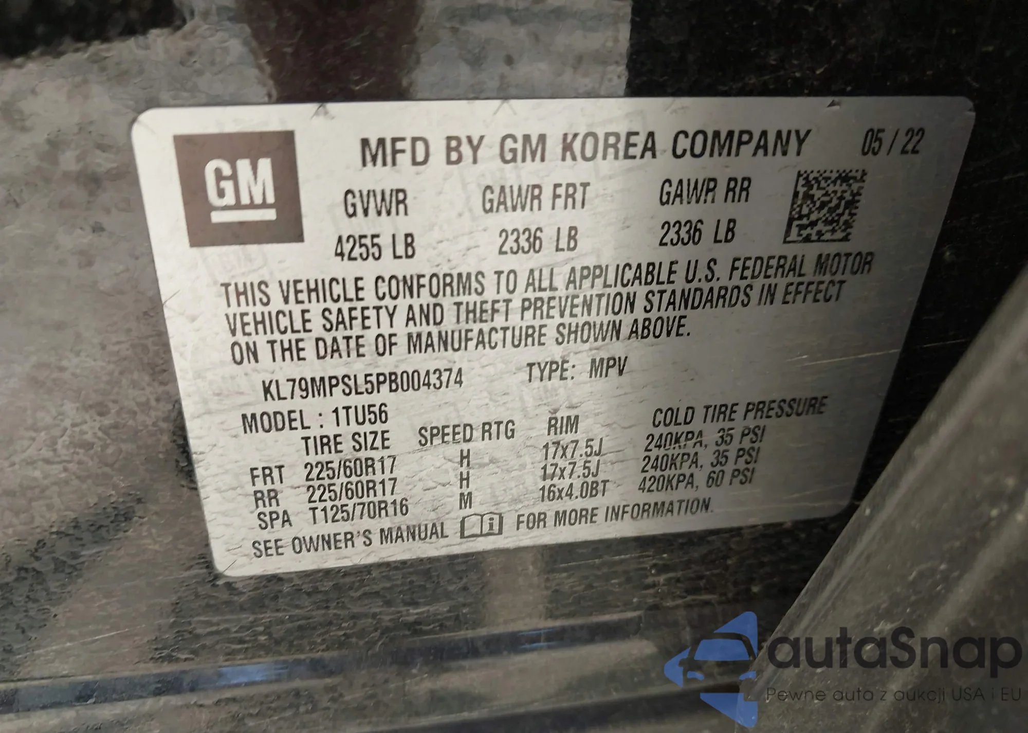 VIN: KL79MPSL5PB004374