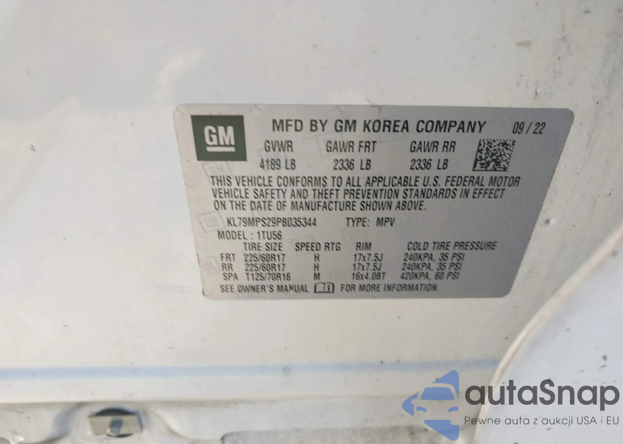 VIN: KL79MPS29PB035344
