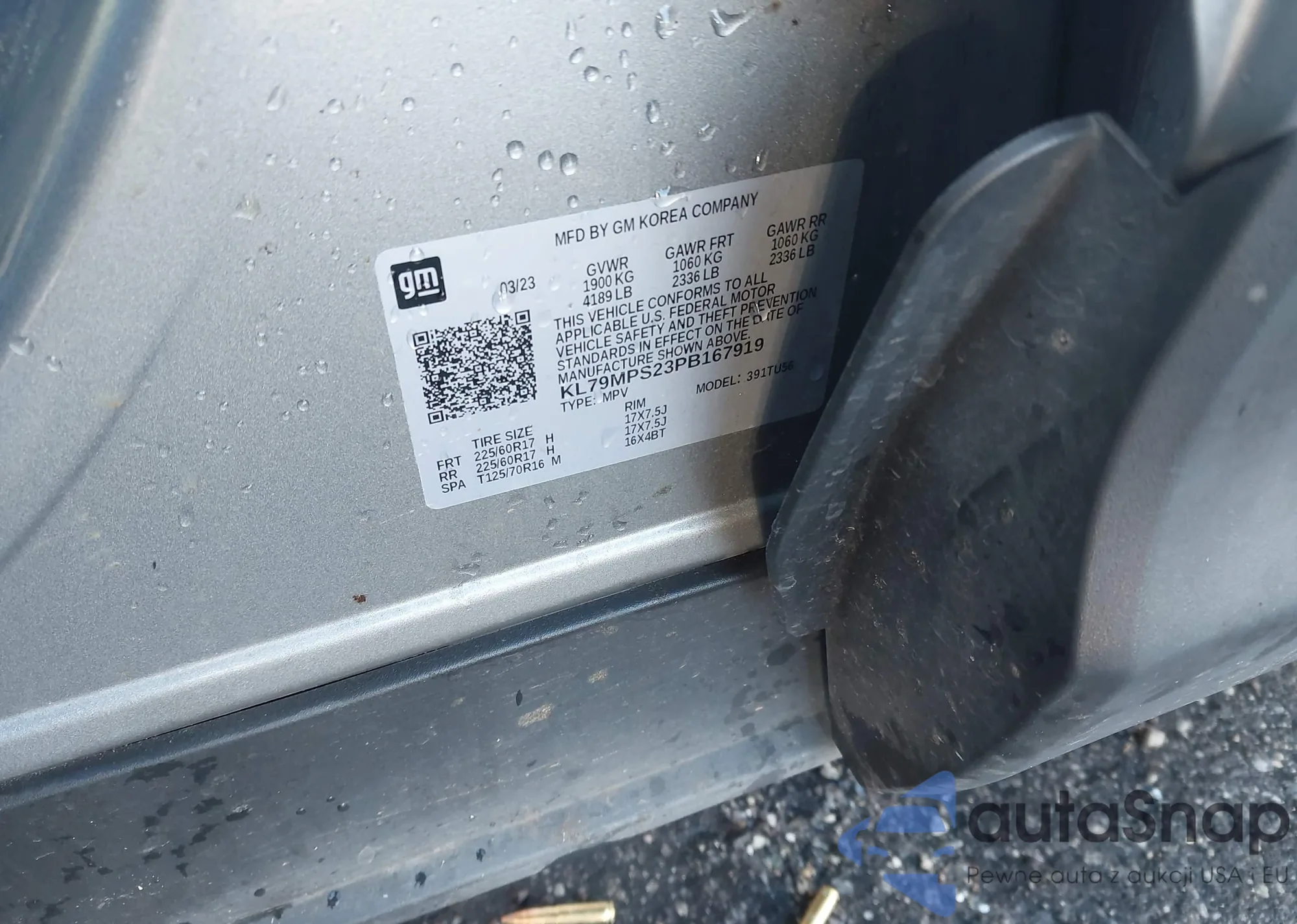 Автомобиль Chevrolet TrailBlazer 2023 (VIN KL79MPS23PB167919) ранее не участвовал в торгах. Документы чистые, пробег соответствует или ниже среднего по рынку. Продаётся страховой компанией — рекомендуем покупку. Доставка в порт займет около 6–8 недель.
