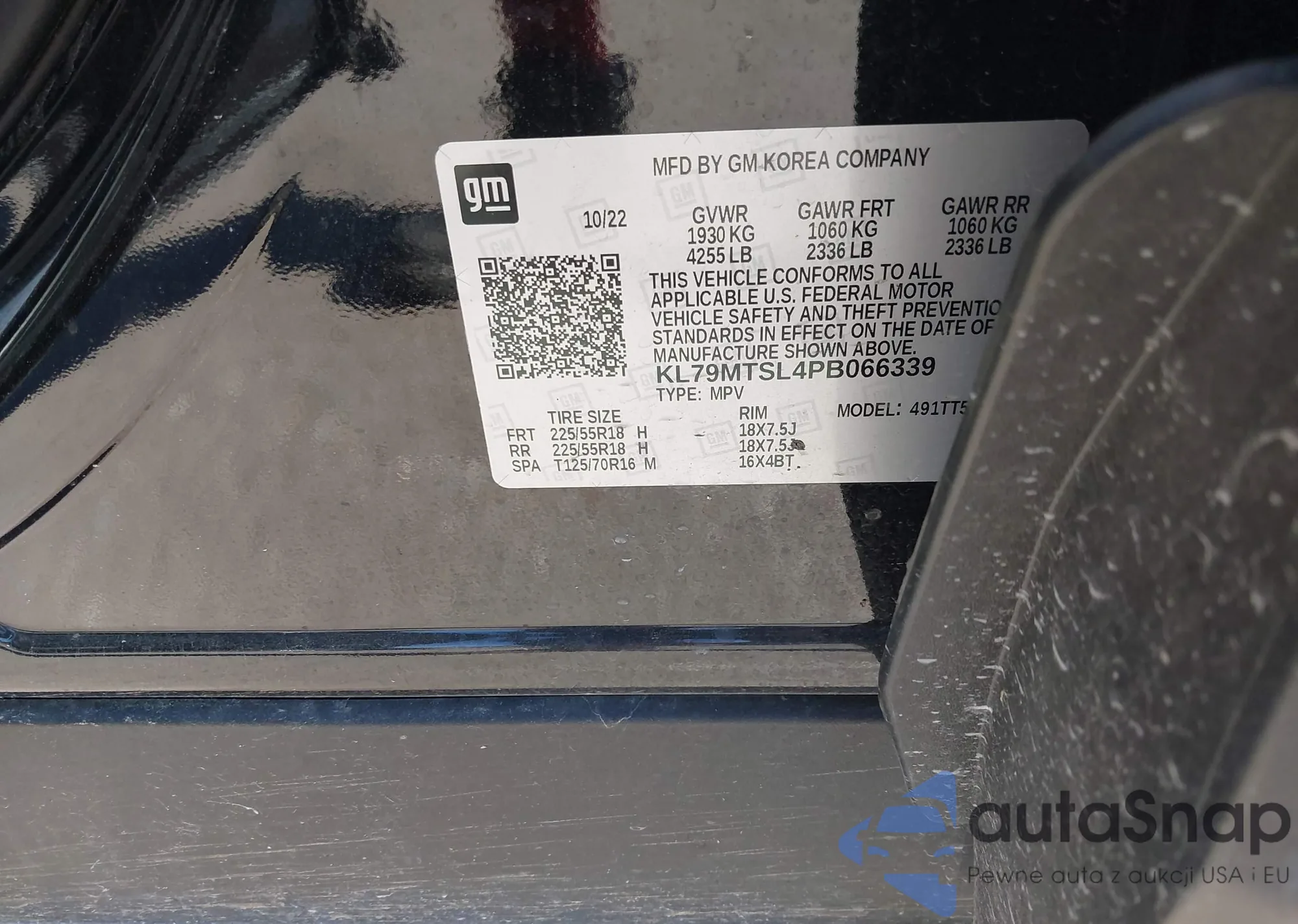 • VIN: KL79MTSL4PB066339