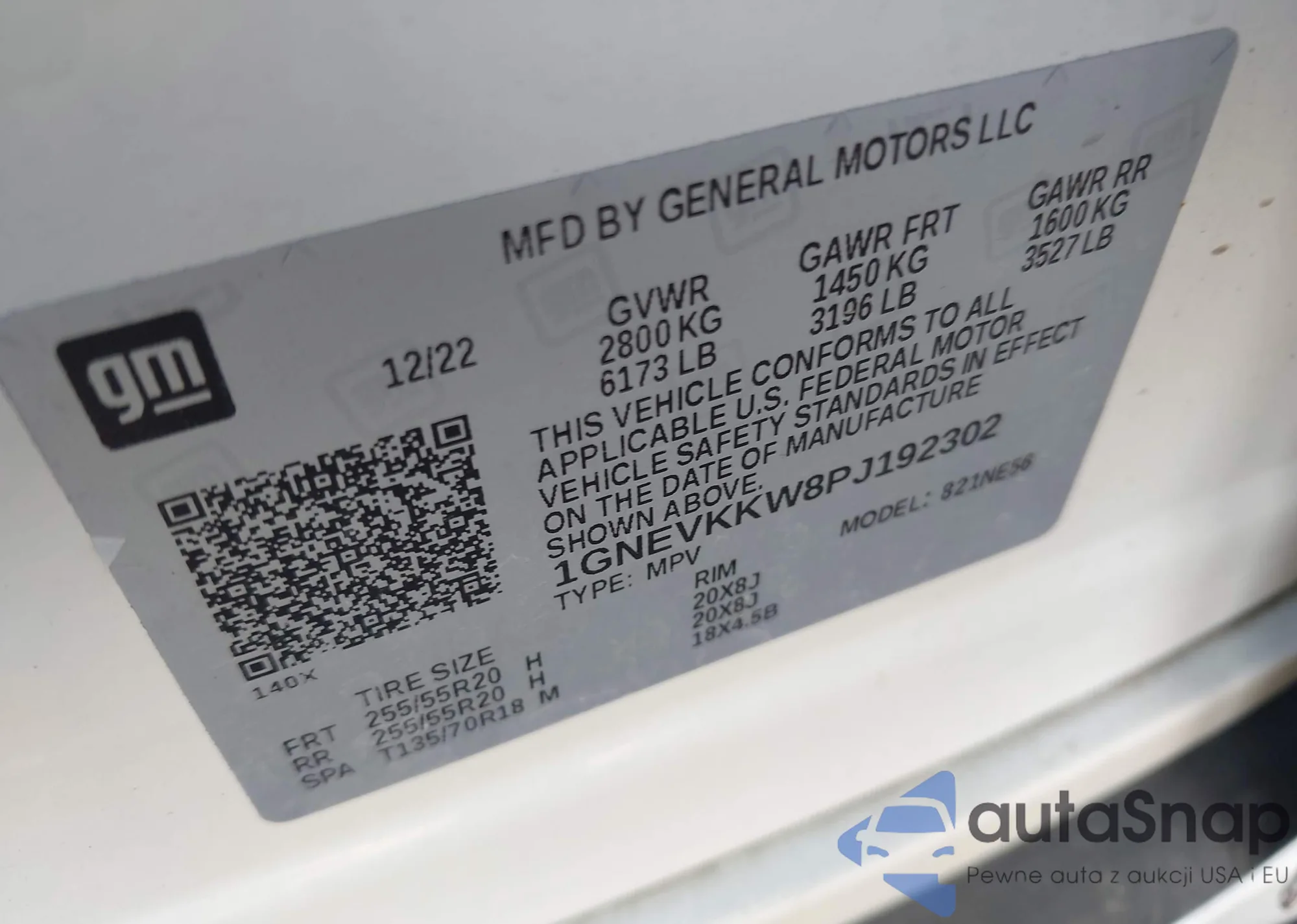 VIN: 1GNEVKKW8PJ192302