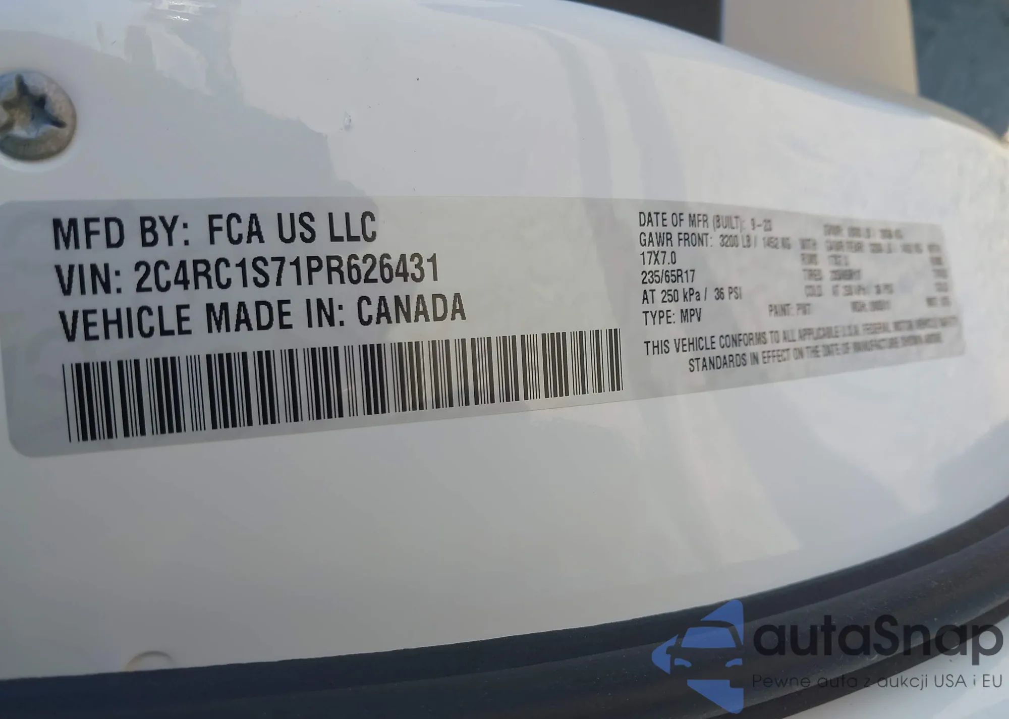 VIN: 2C4RC1S71PR626431