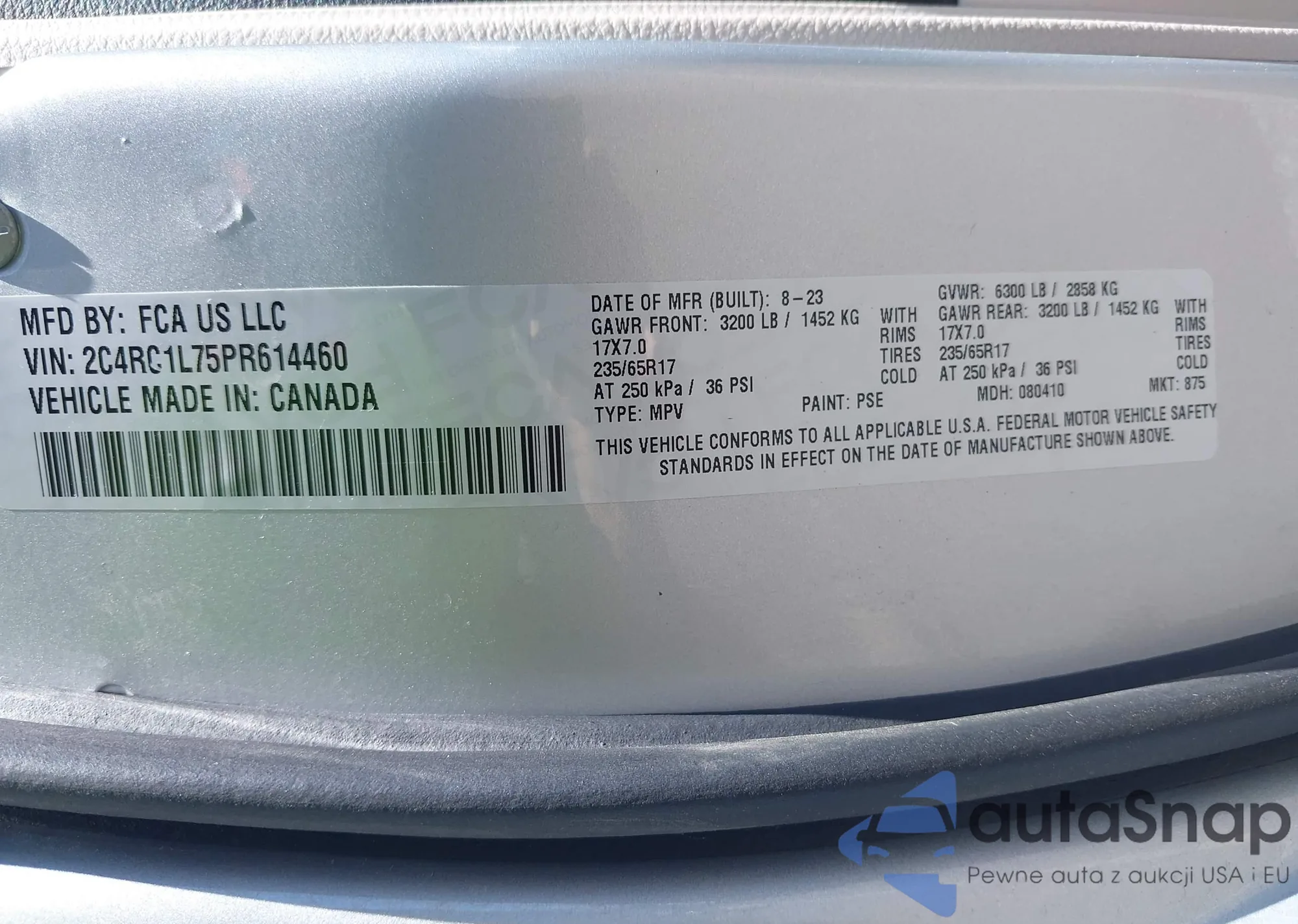VIN: 2C4RC1L75PR614460