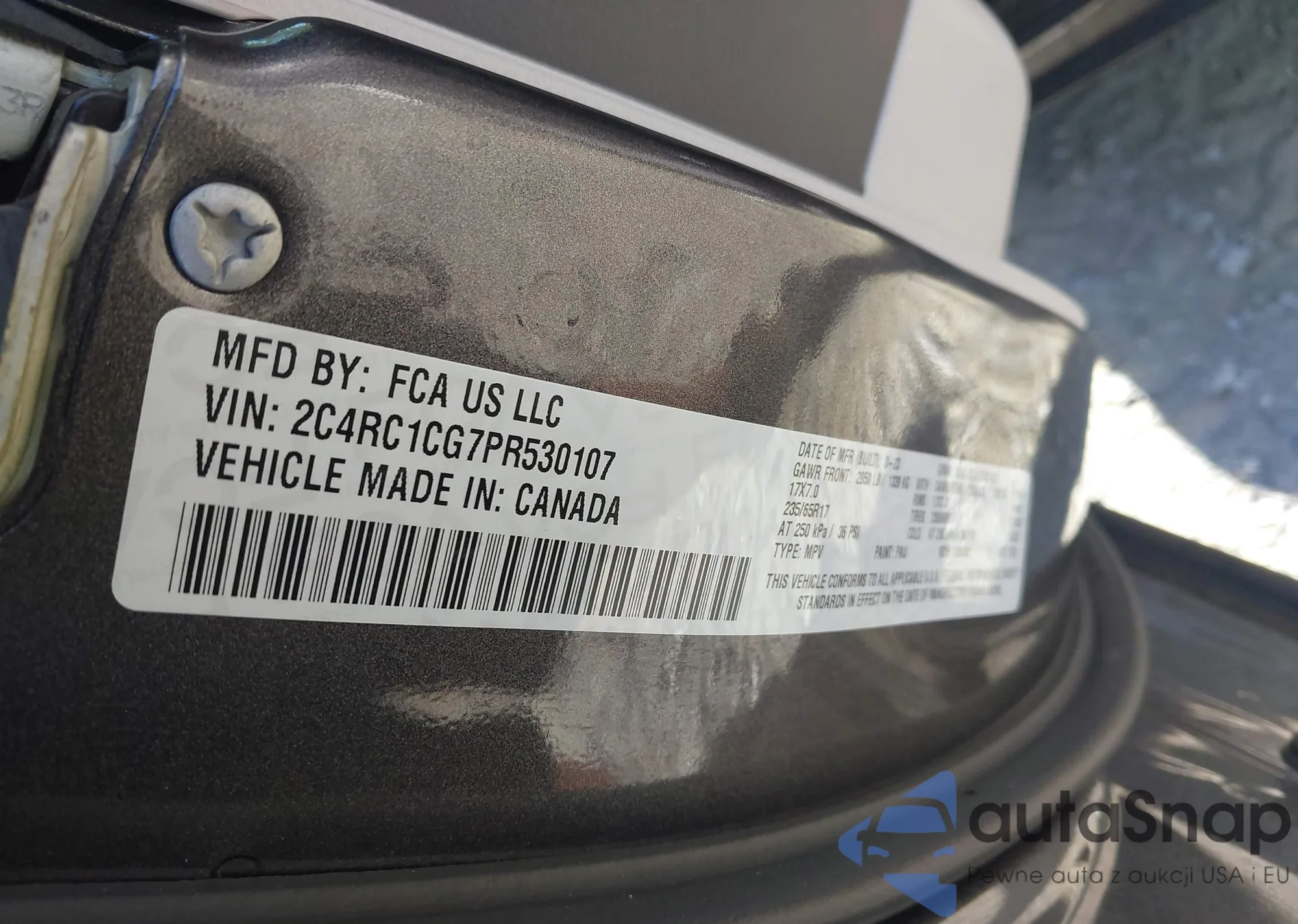 • VIN: 2C4RC1CG7PR530107