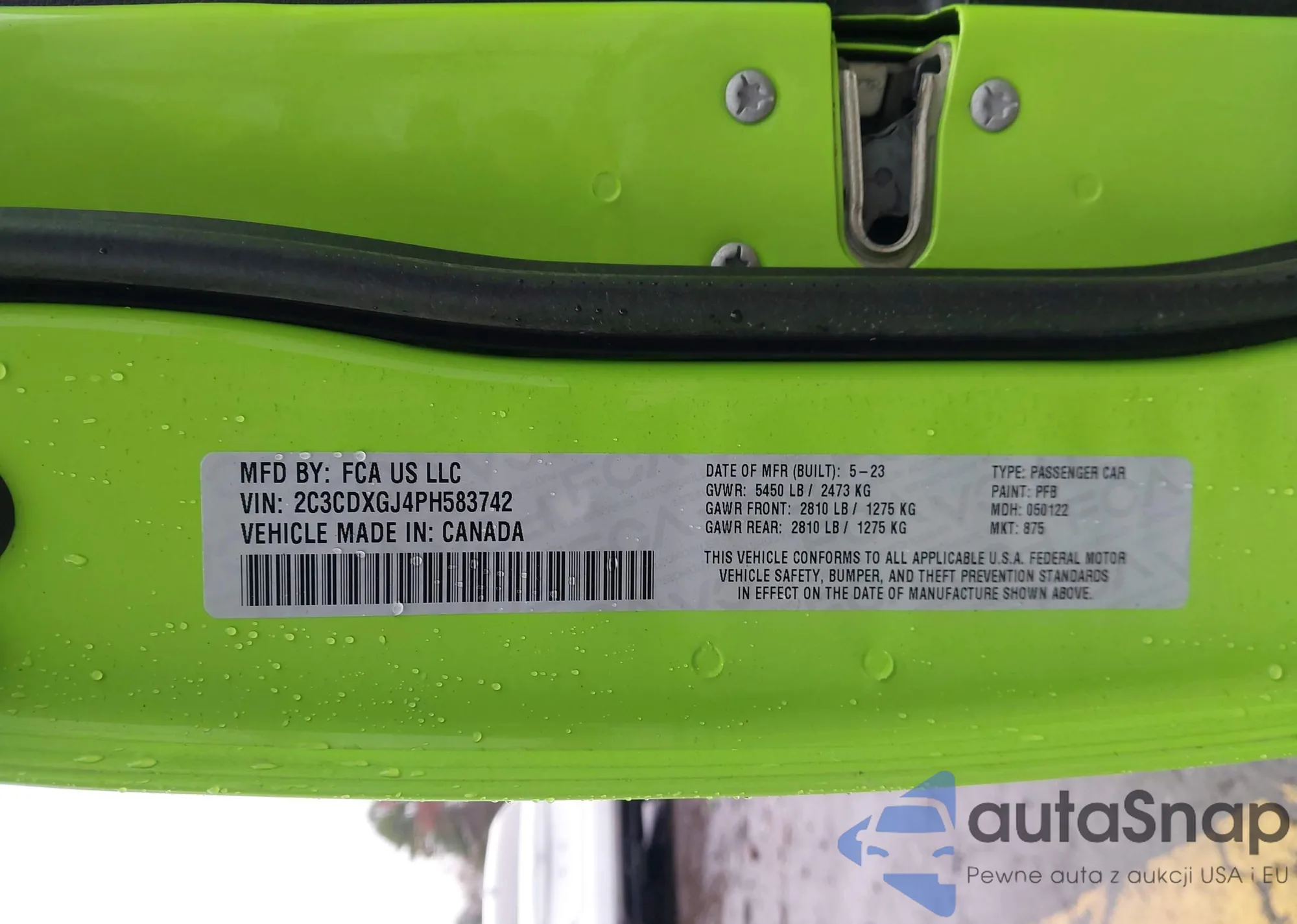 • VIN: 2C3CDXGJ4PH583742