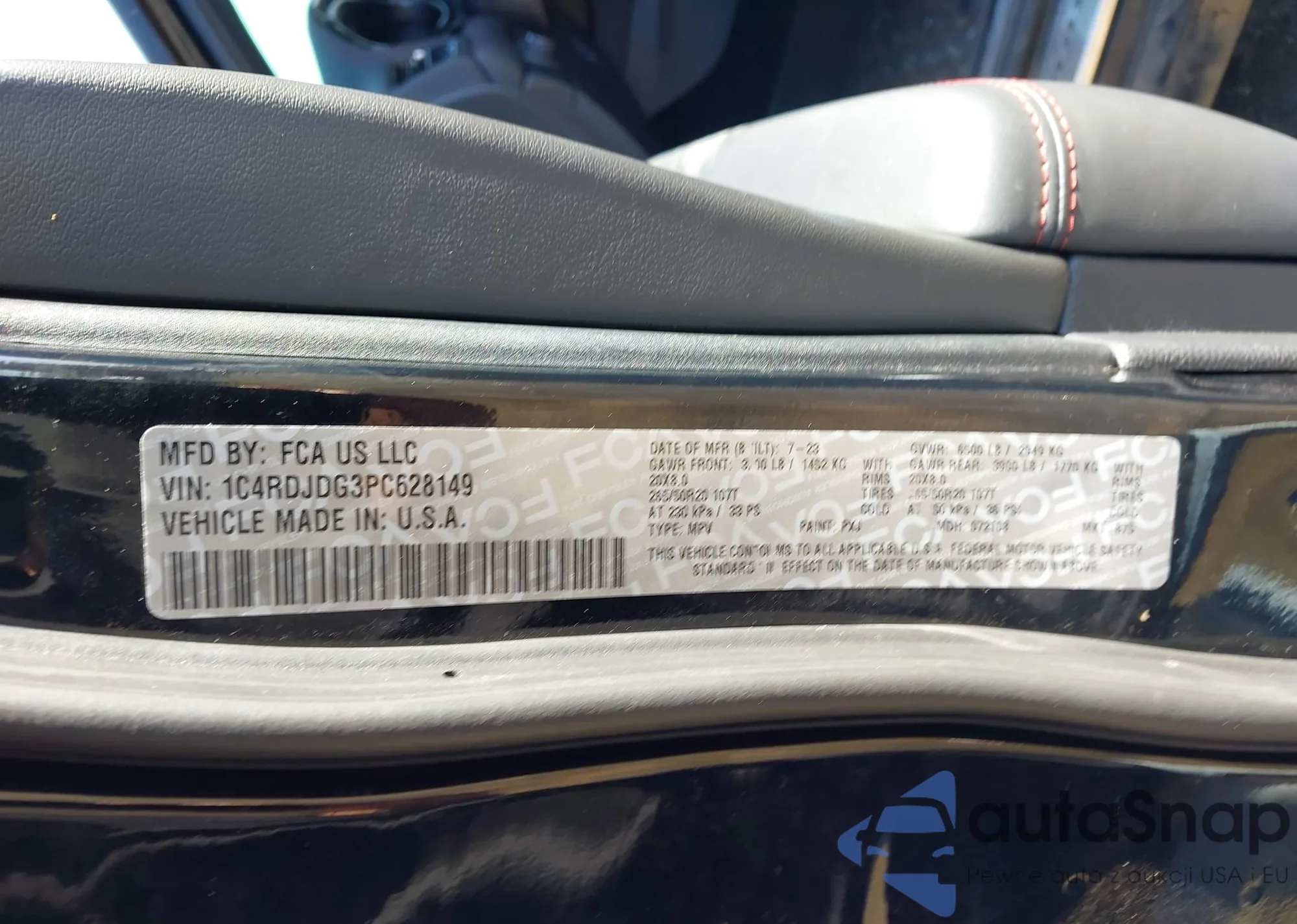 Автомобиль Dodge Durango 2023 (VIN 1C4RDJDG3PC628149) имеет документы, препятствующие регистрации. Могут возникнуть сложности при экспорте и регистрации. Обратитесь к экспертам AutaSnap для поиска альтернатив.