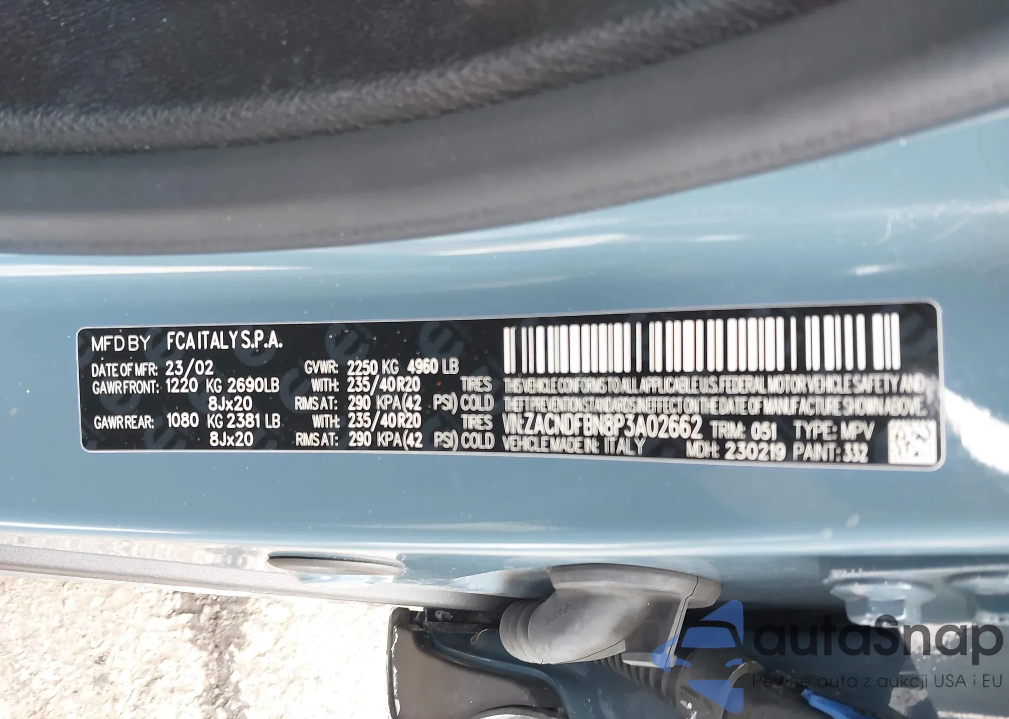 • VIN: ZACNDFBN8P3A02662