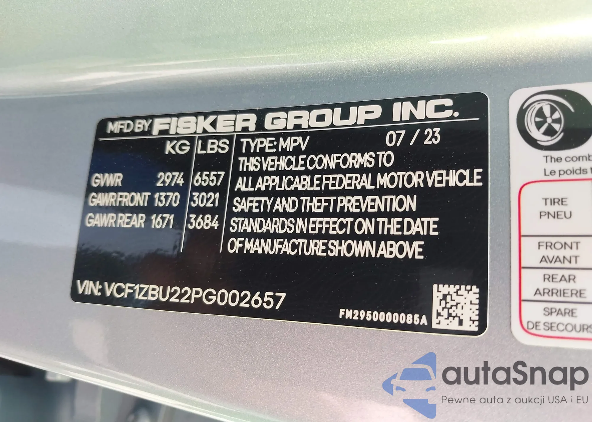• VIN: VCF1ZBU22PG002657