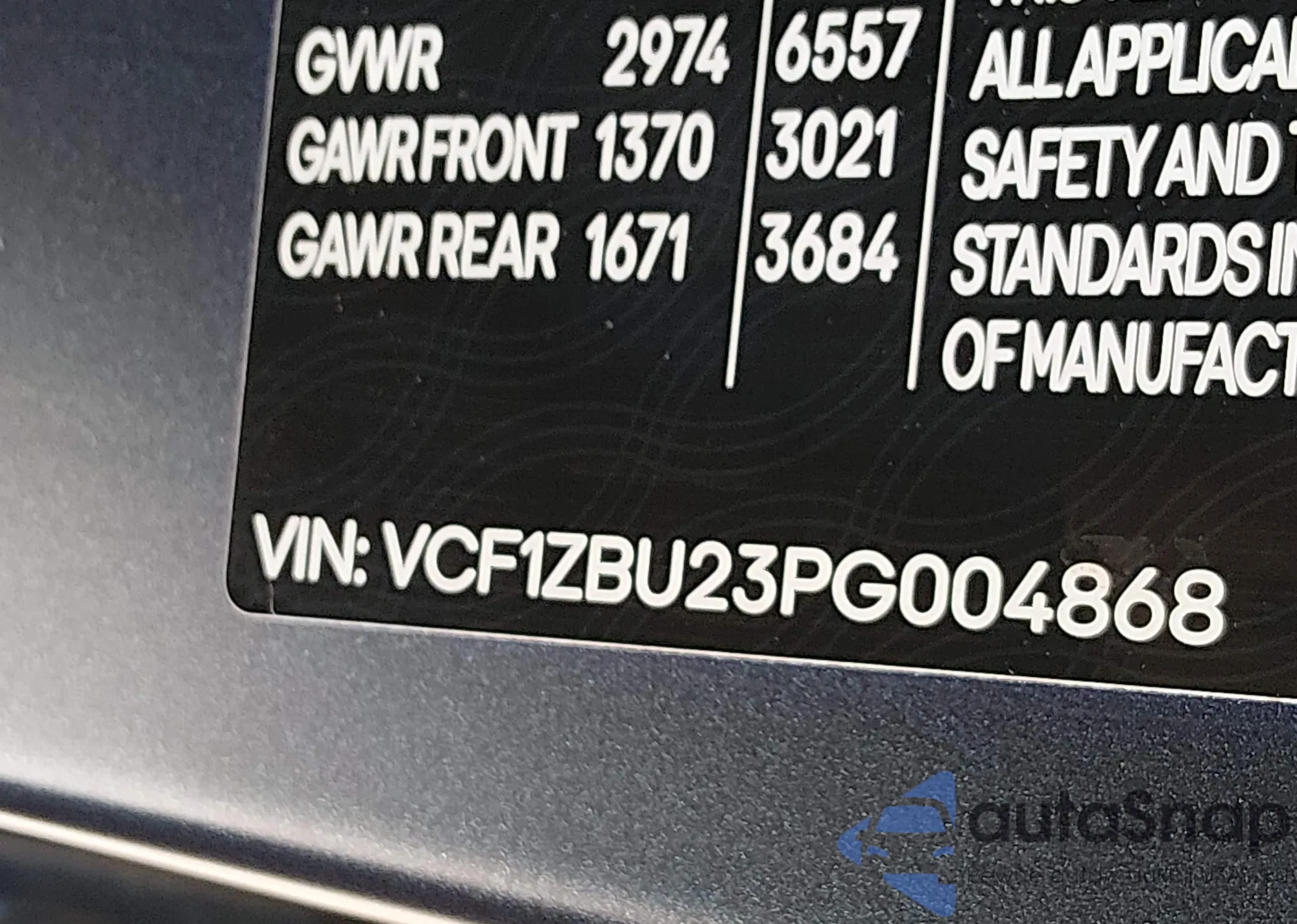 • VIN: VCF1ZBU23PG004868
