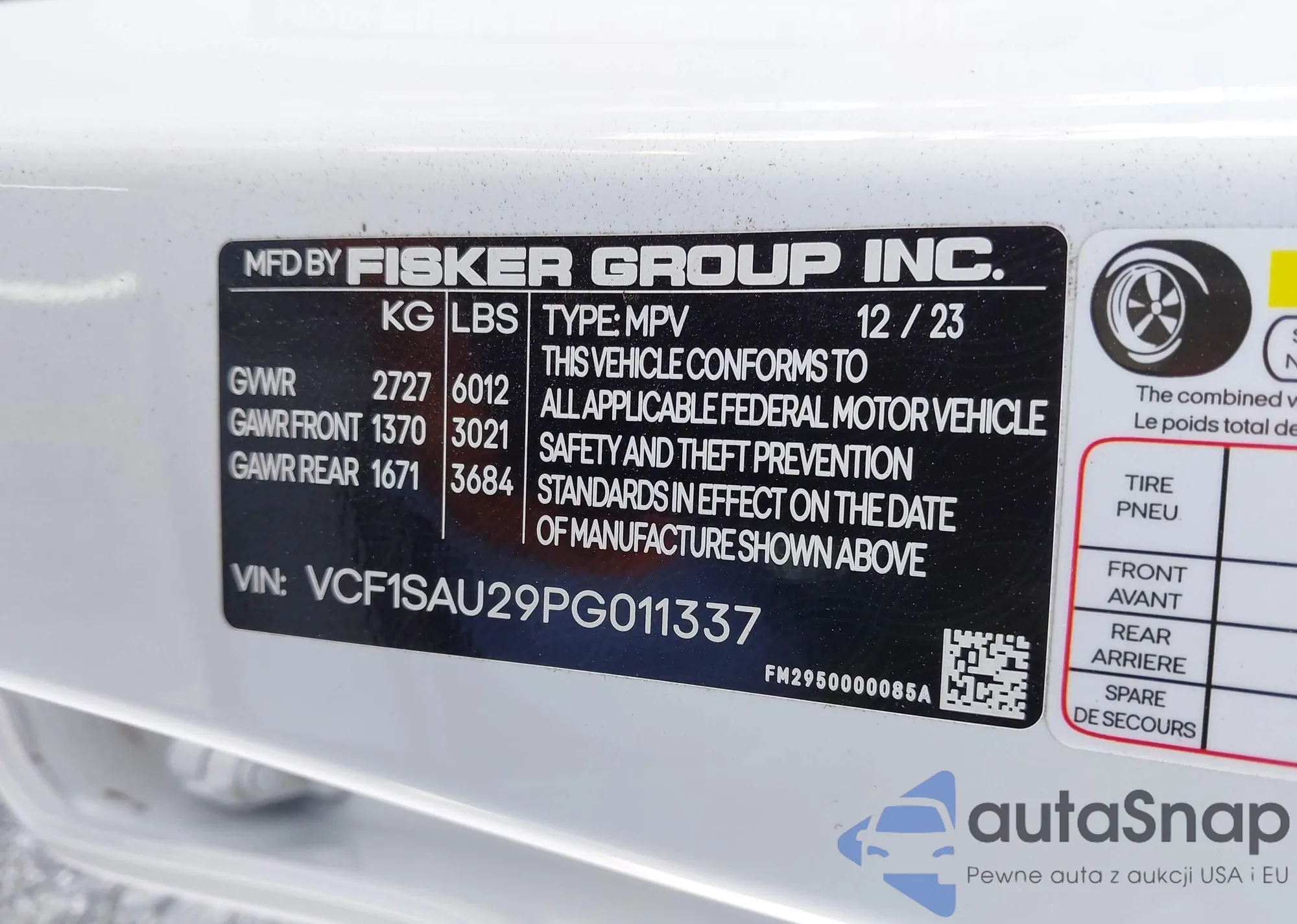 • VIN: VCF1SAU29PG011337