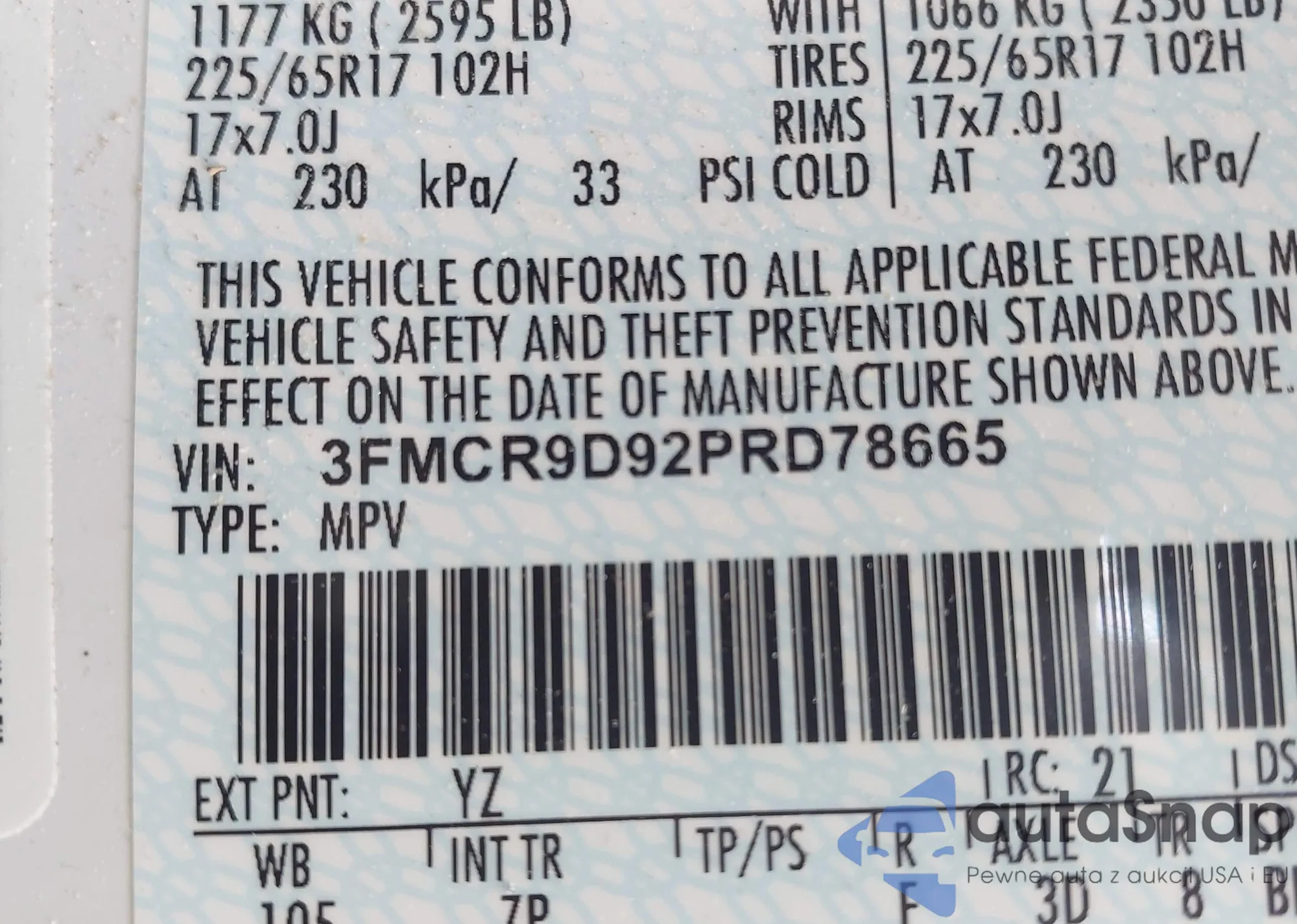 VIN: 3FMCR9D92PRD78665