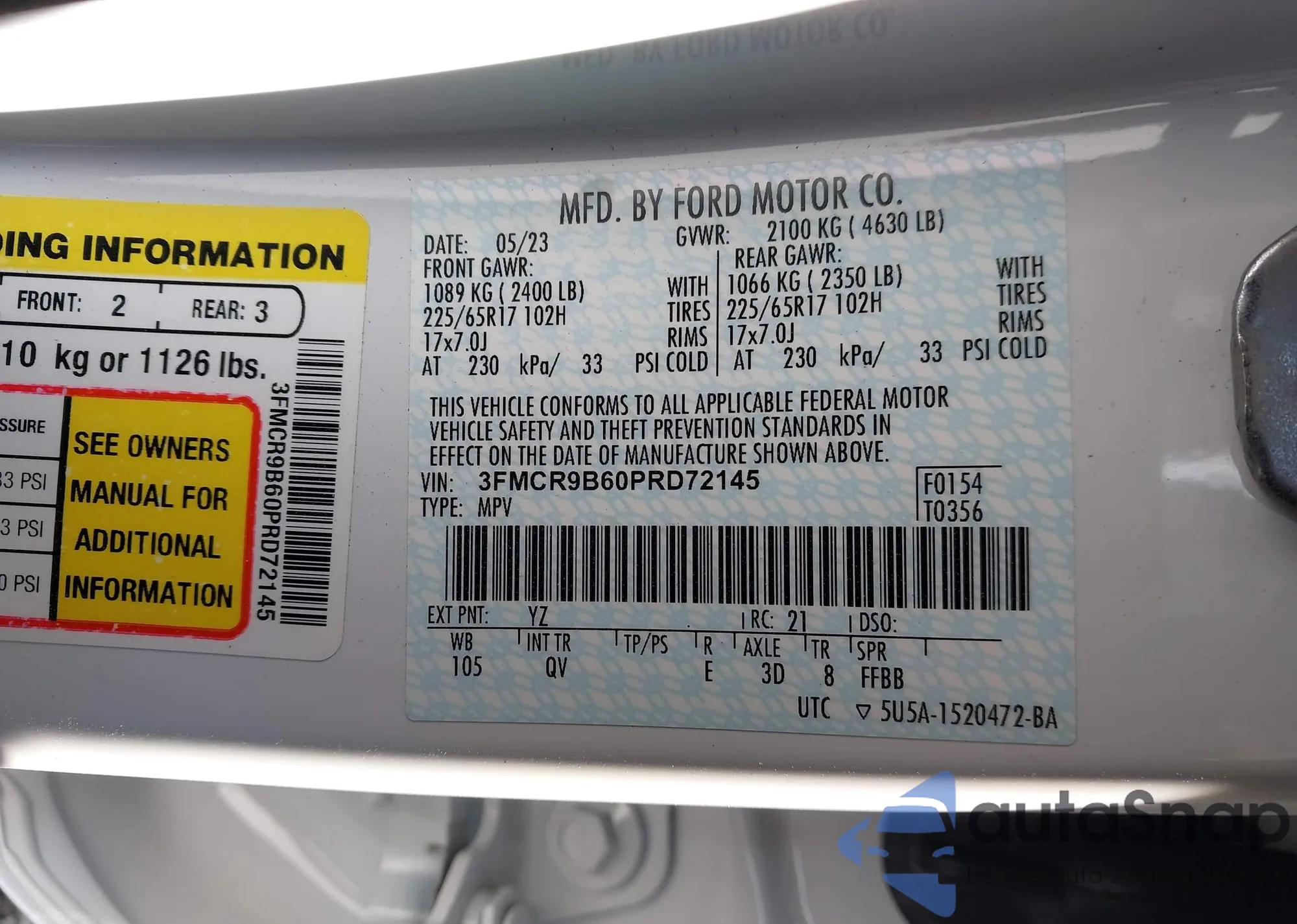 Автомобиль Ford Bronco Sport 2023 (VIN 3FMCR9B60PRD72145) ранее не участвовал в торгах. Документы чистые, пробег соответствует или ниже среднего по рынку. Продаётся страховой компанией — рекомендуем покупку. Доставка в порт займет около 6–8 недель.