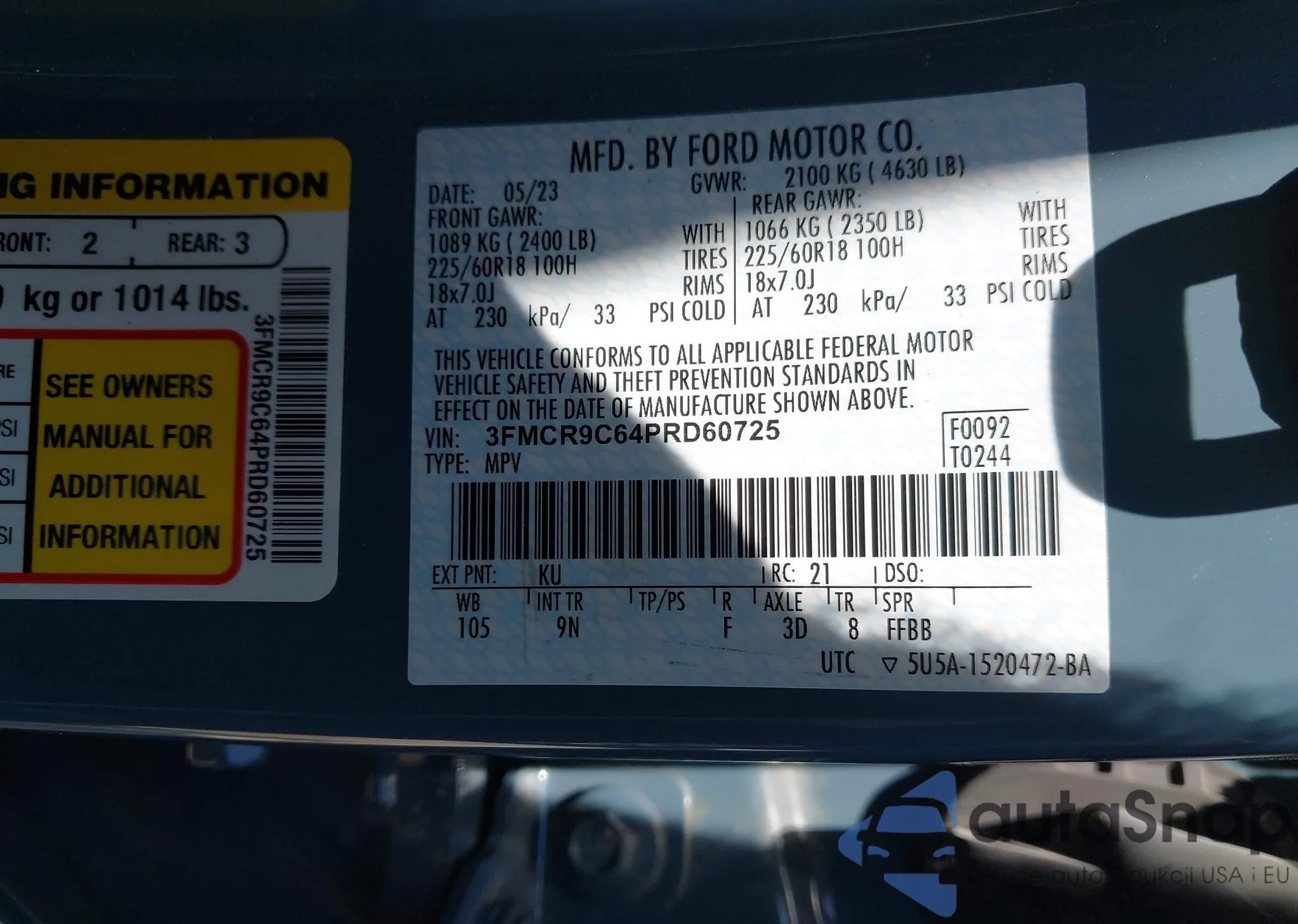 • VIN: 3FMCR9C64PRD60725