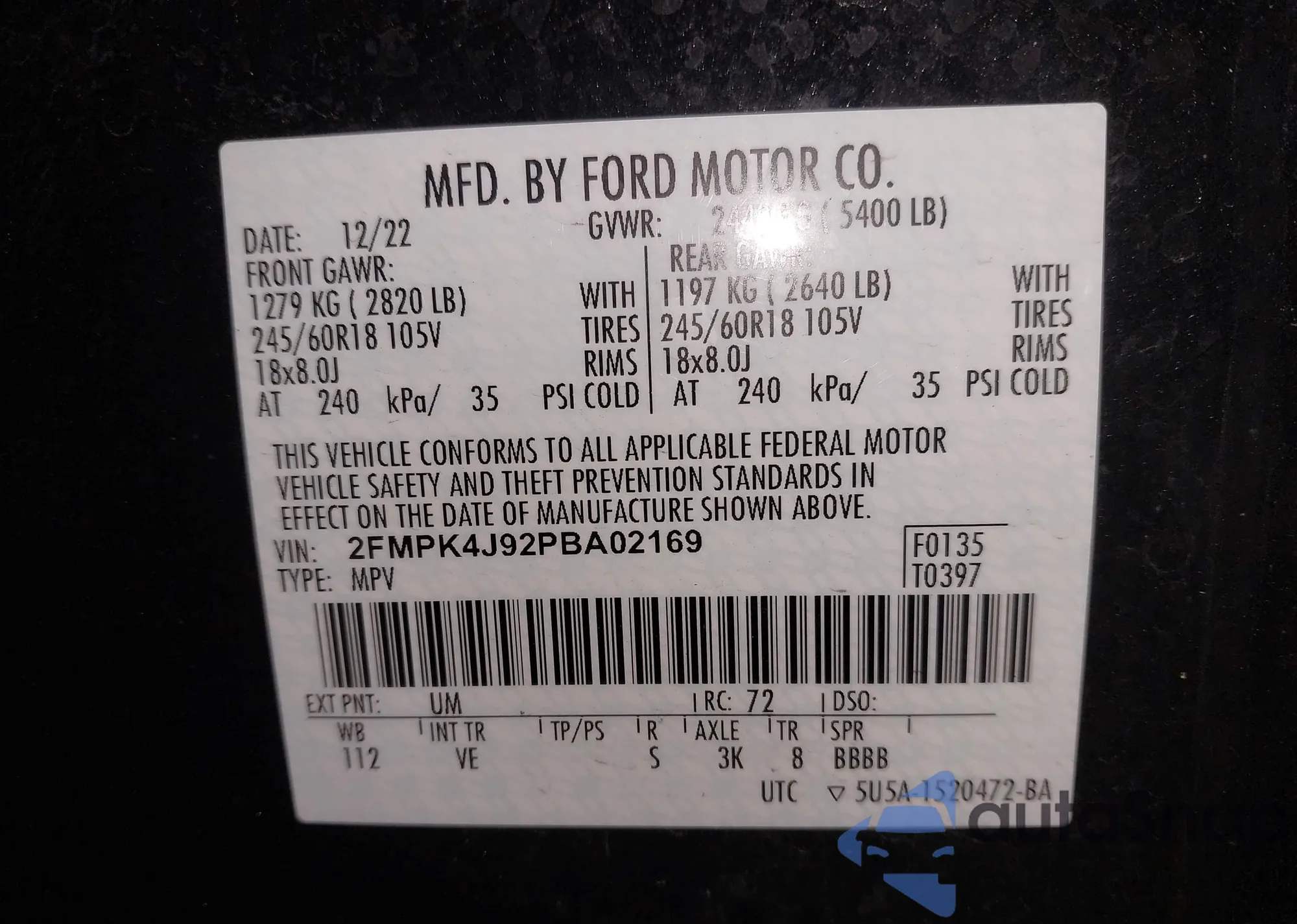 VIN: 2FMPK4J92PBA02169