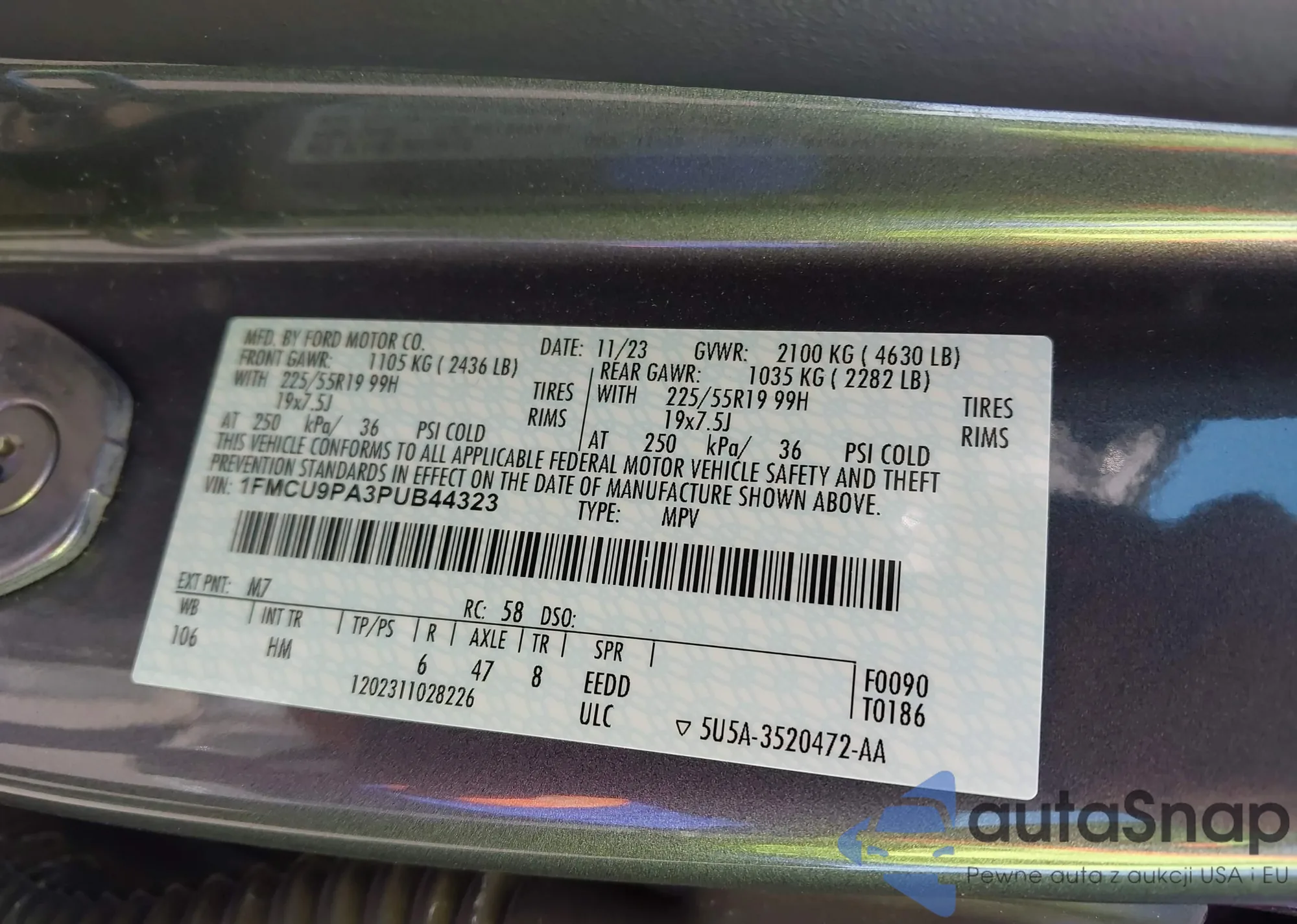 Автомобиль Ford Escape 2023 (VIN 1FMCU9PA3PUB44323) ранее не участвовал в торгах. Документы чистые, пробег соответствует или ниже среднего по рынку. Продаётся страховой компанией — рекомендуем покупку. Доставка в порт займет около 6–8 недель.