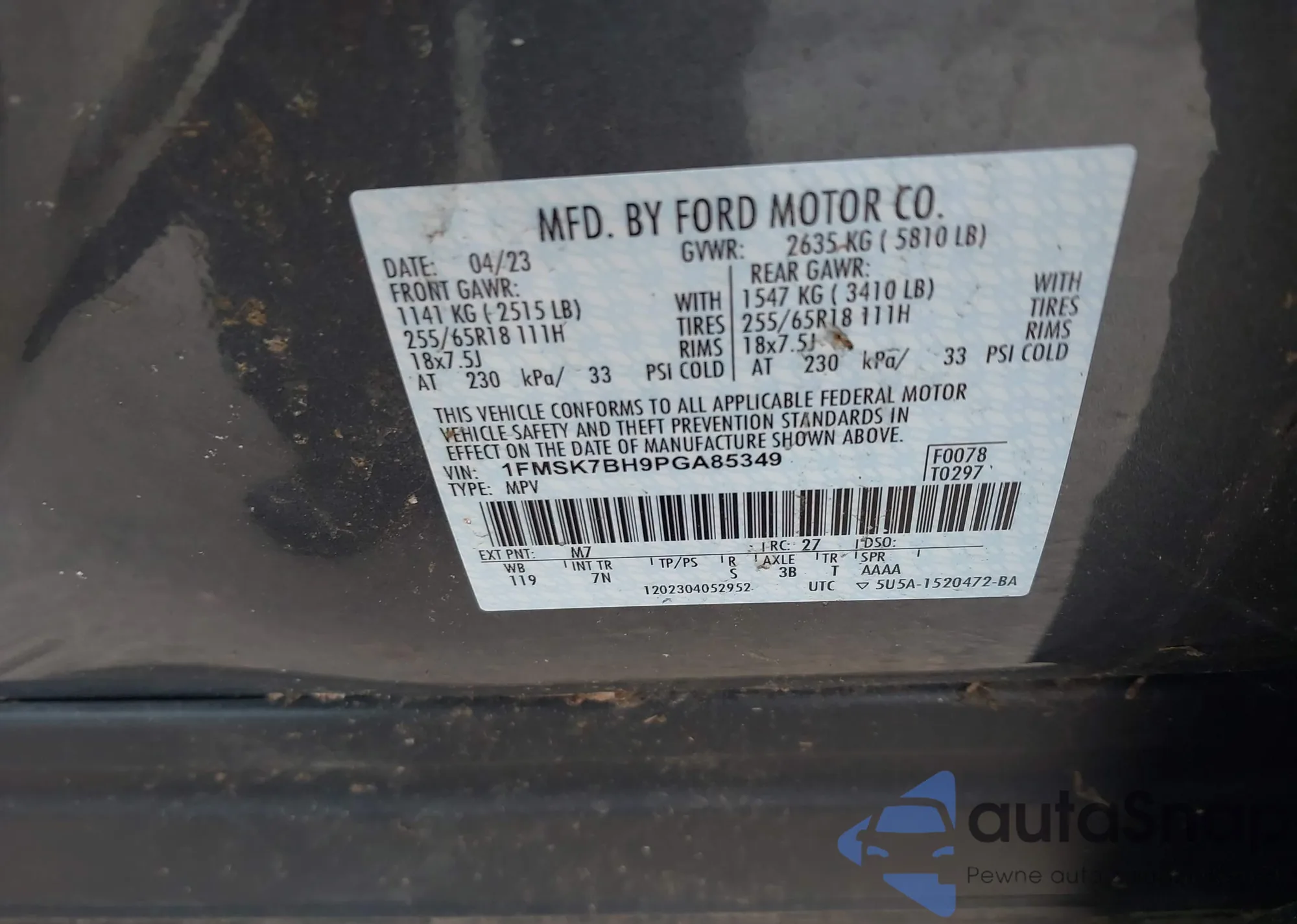 VIN: 1FMSK7BH9PGA85349