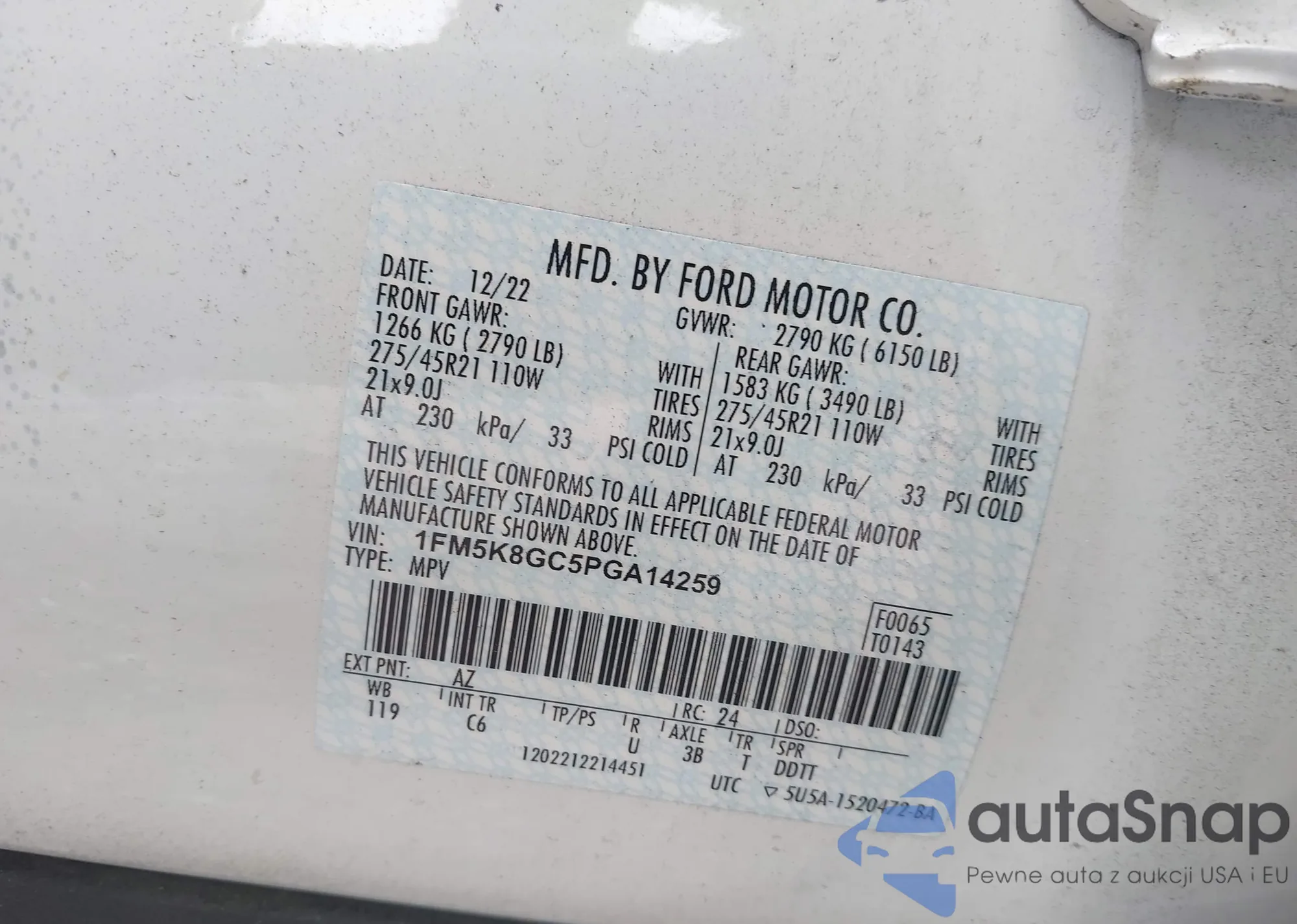 • VIN: 1FM5K8GC5PGA14259