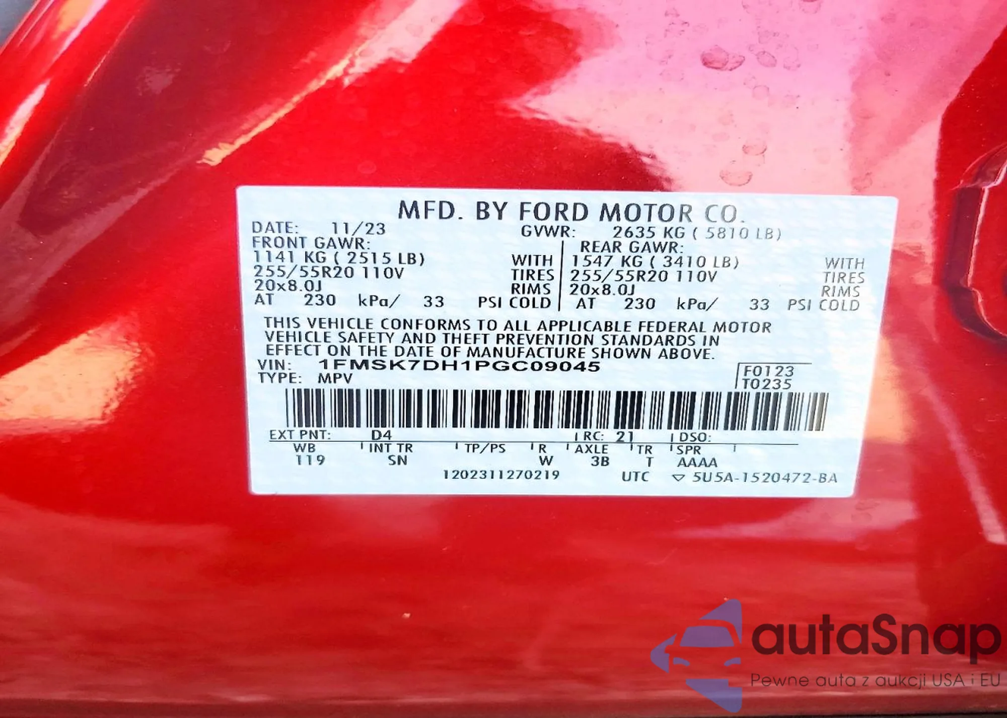 VIN: 1FMSK7DH1PGC09045