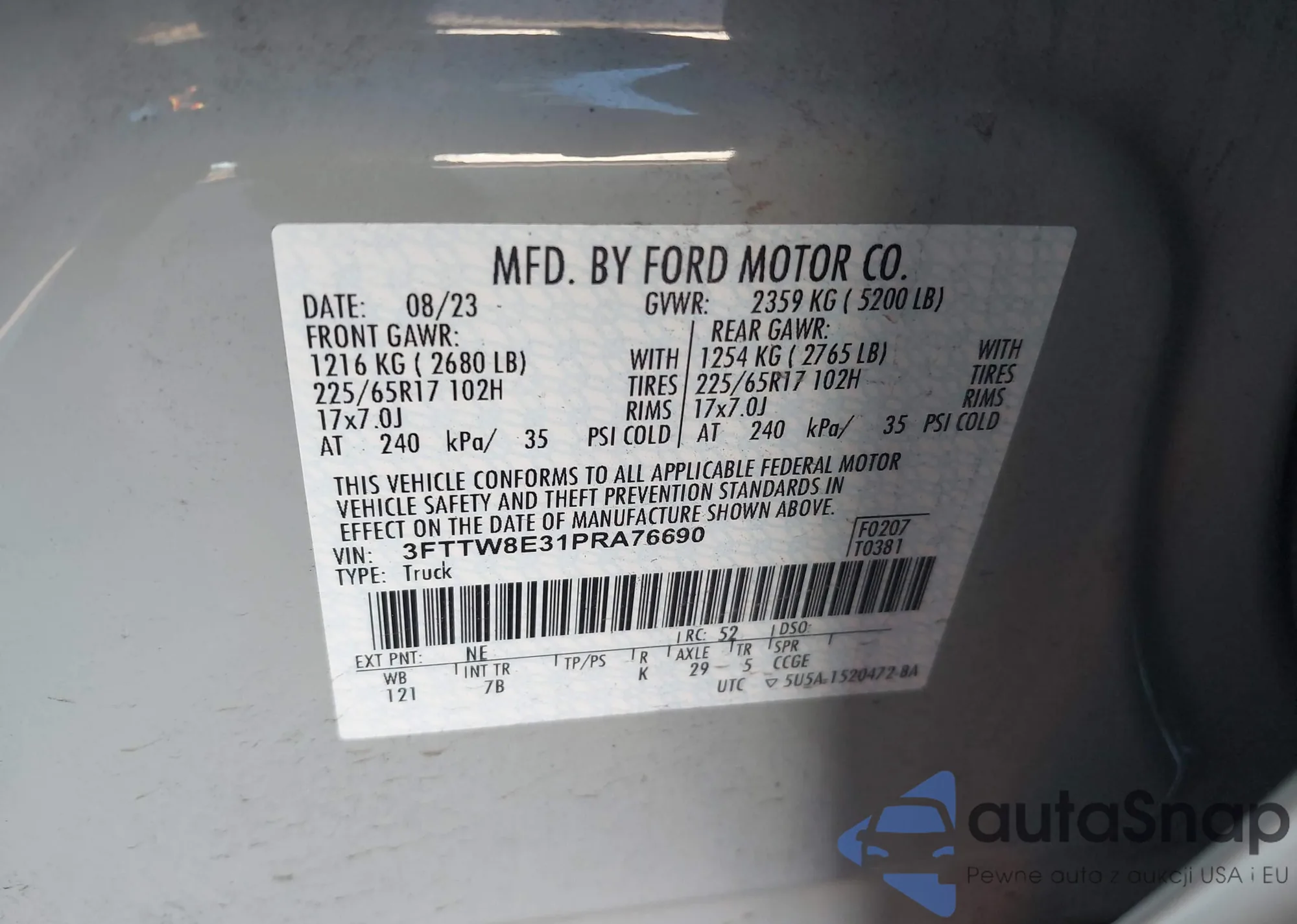 VIN: 3FTTW8E31PRA76690