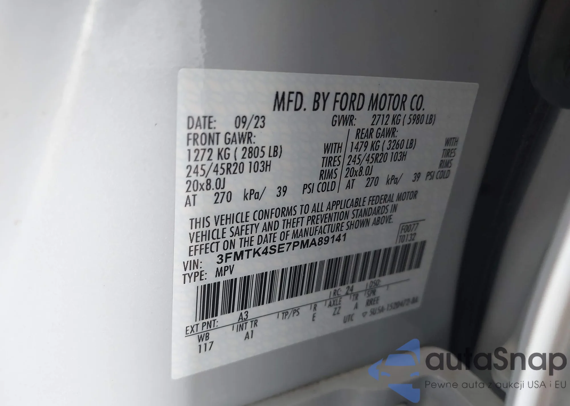 VIN: 3FMTK4SE7PMA89141