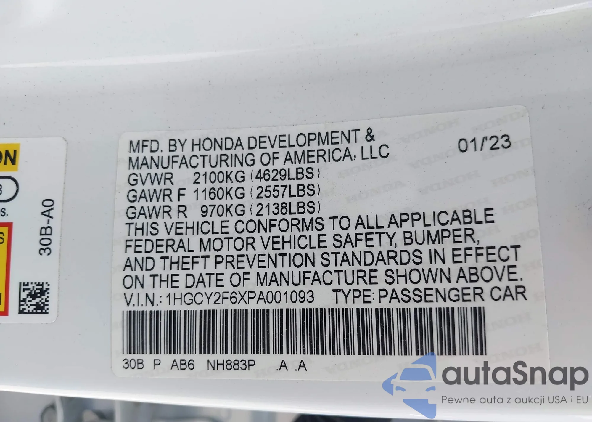 VIN: 1HGCY2F6XPA001093