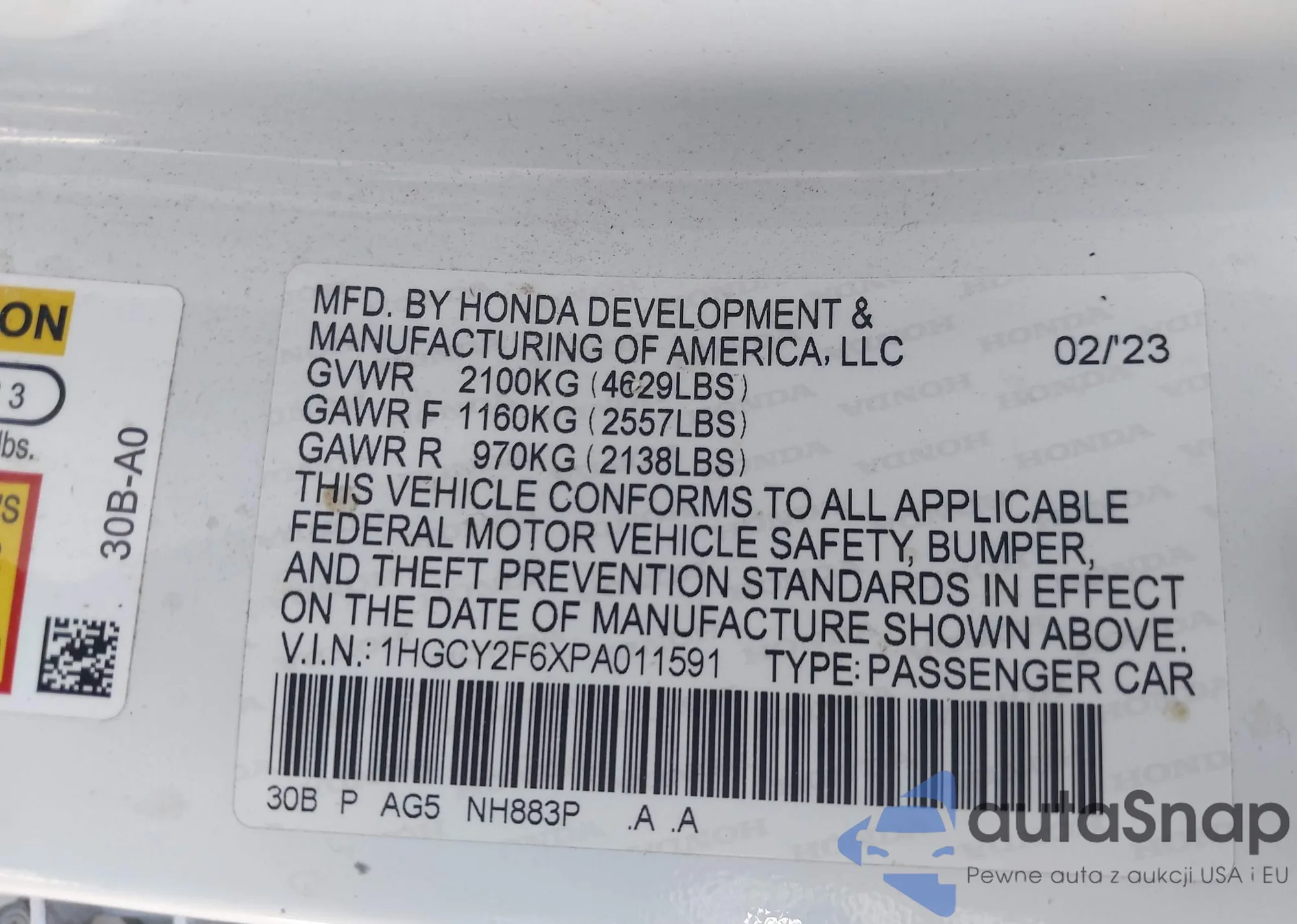 VIN: 1HGCY2F6XPA011591