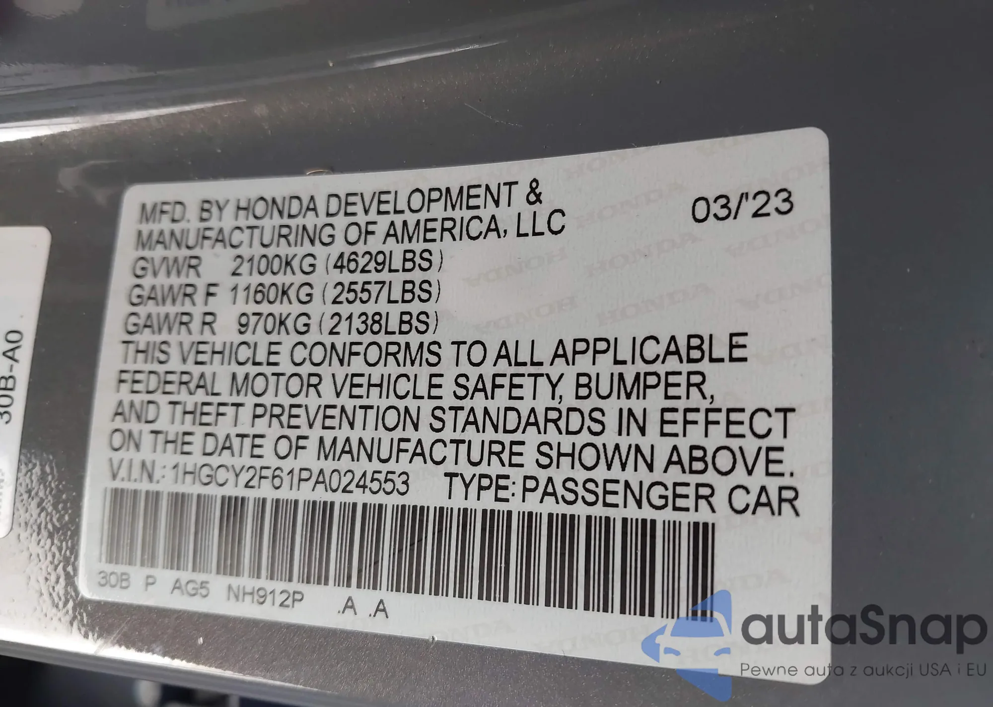 VIN: 1HGCY2F61PA024553