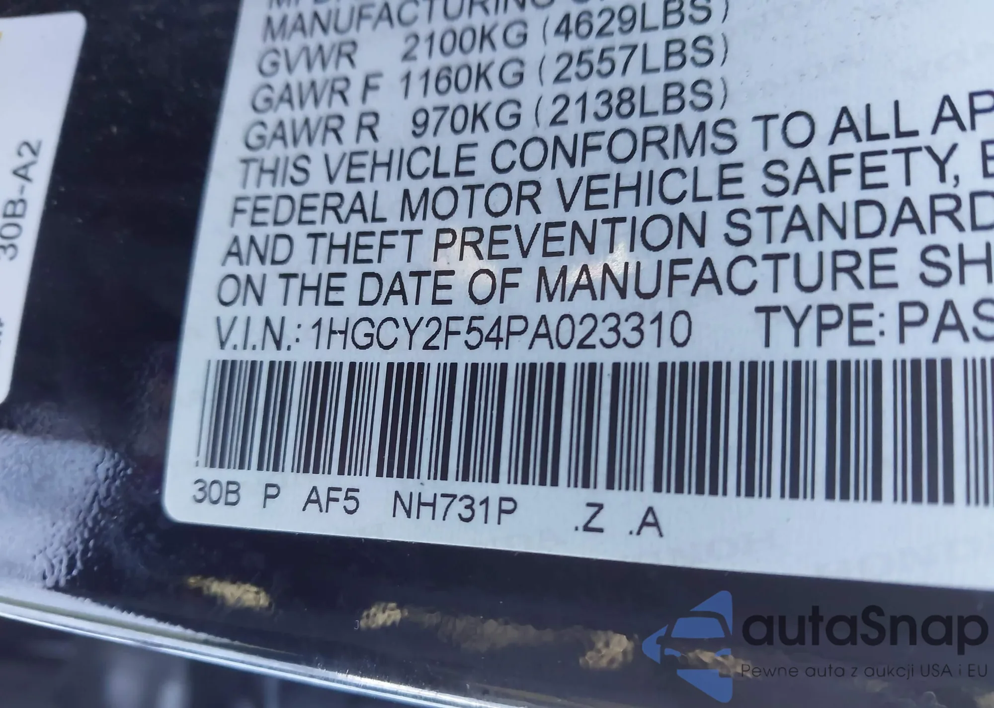 VIN: 1HGCY2F54PA023310