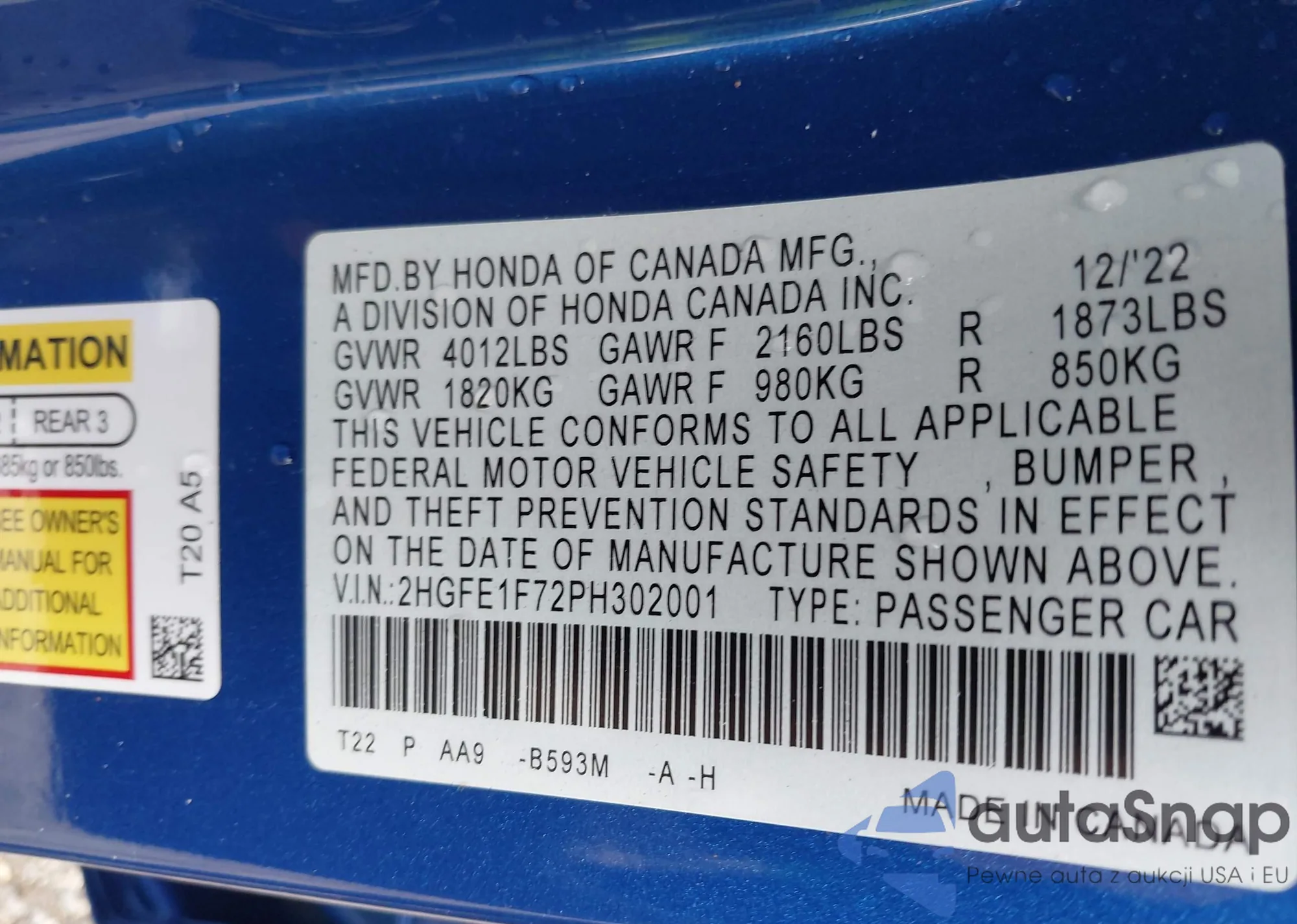 VIN: 2HGFE1F72PH302001