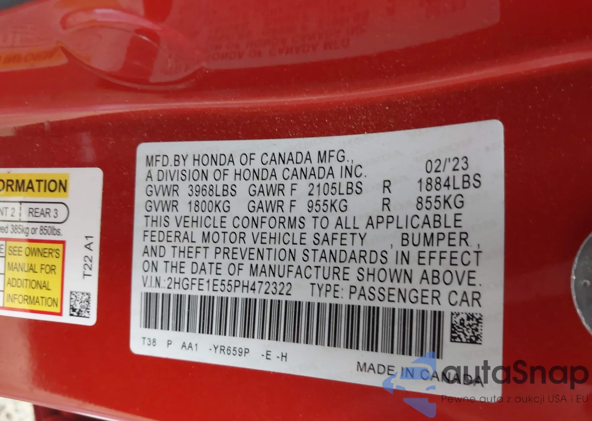 • VIN: 2HGFE1E55PH472322