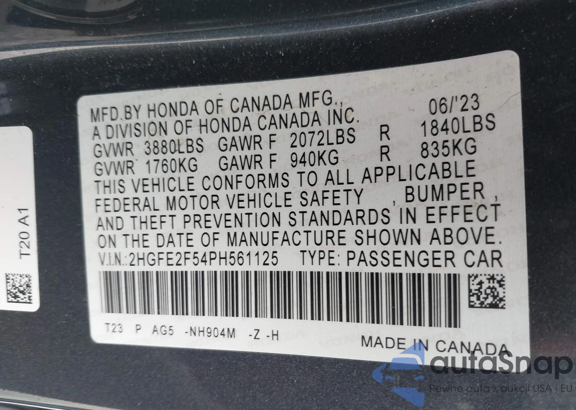 Автомобиль Honda Civic 2023 (VIN 2HGFE2F54PH561125) ранее не участвовал в торгах. Документы чистые, пробег соответствует или ниже среднего по рынку. Продаётся страховой компанией — рекомендуем покупку. Доставка в порт займет около 6–8 недель.