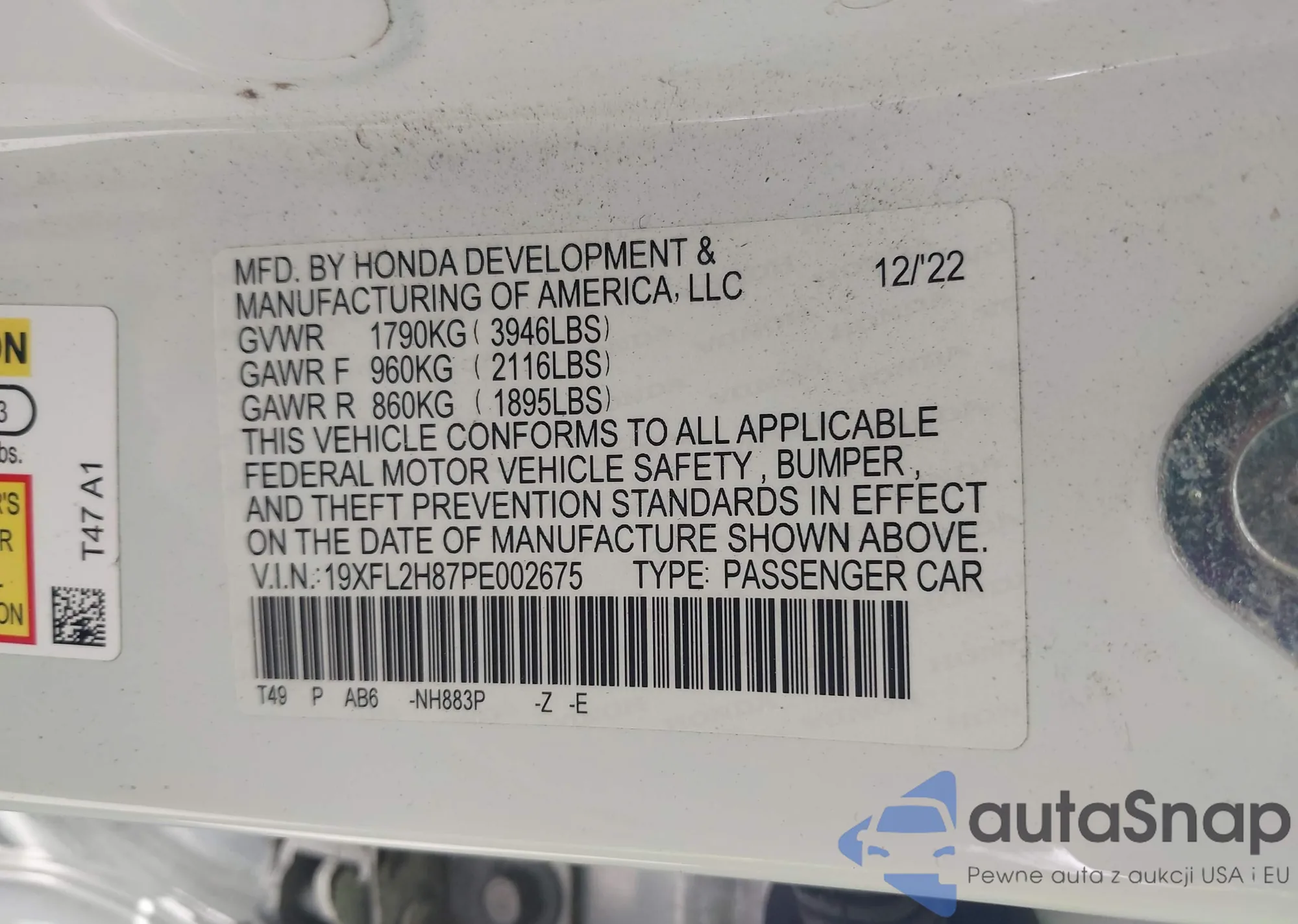 VIN: 19XFL2H87PE002675