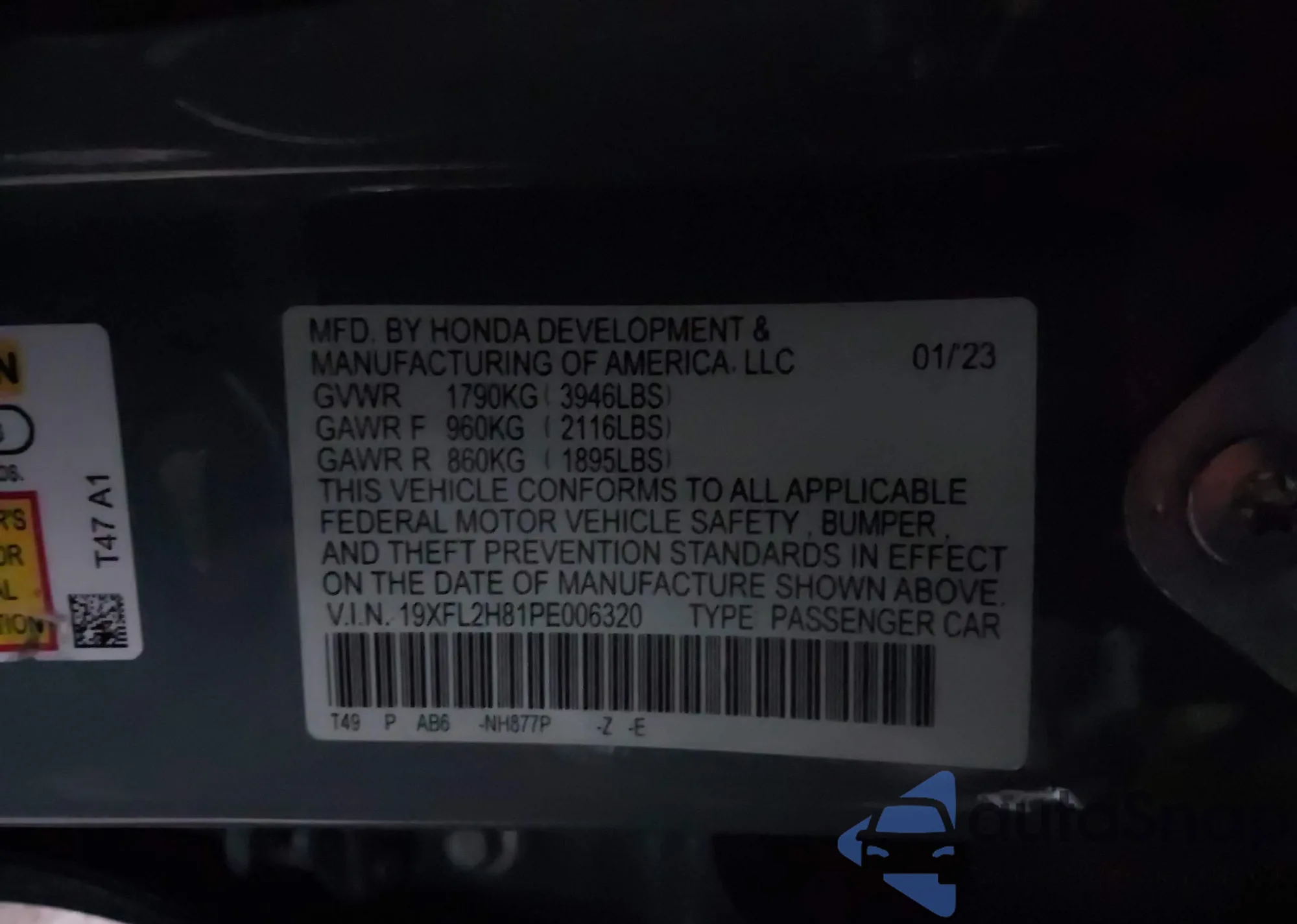 • VIN: 19XFL2H81PE006320
