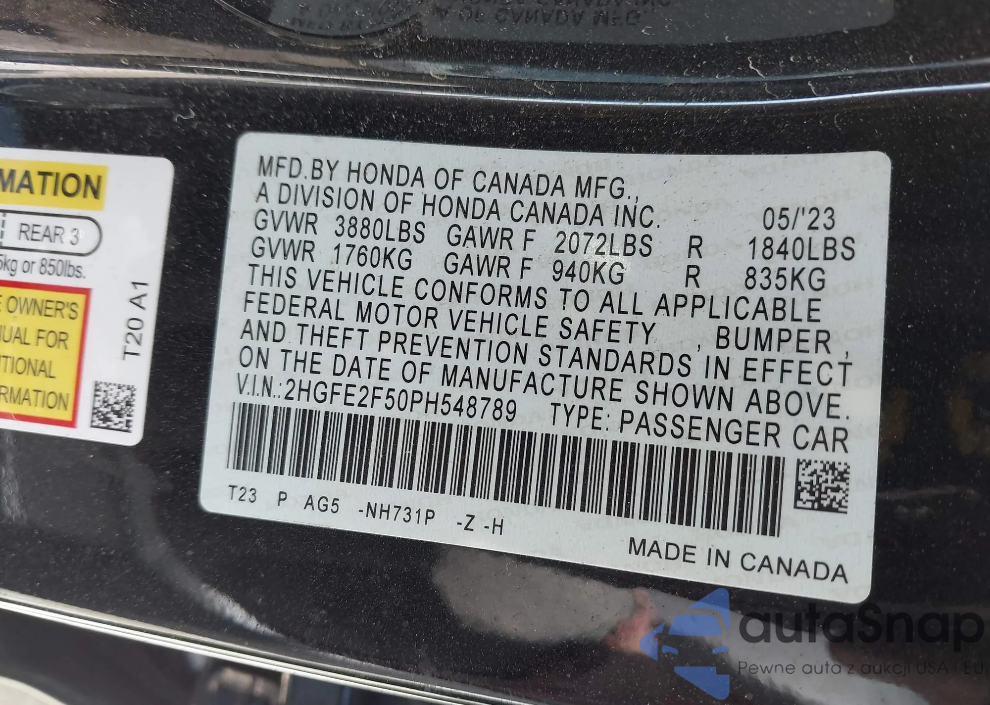 VIN: 2HGFE2F50PH548789