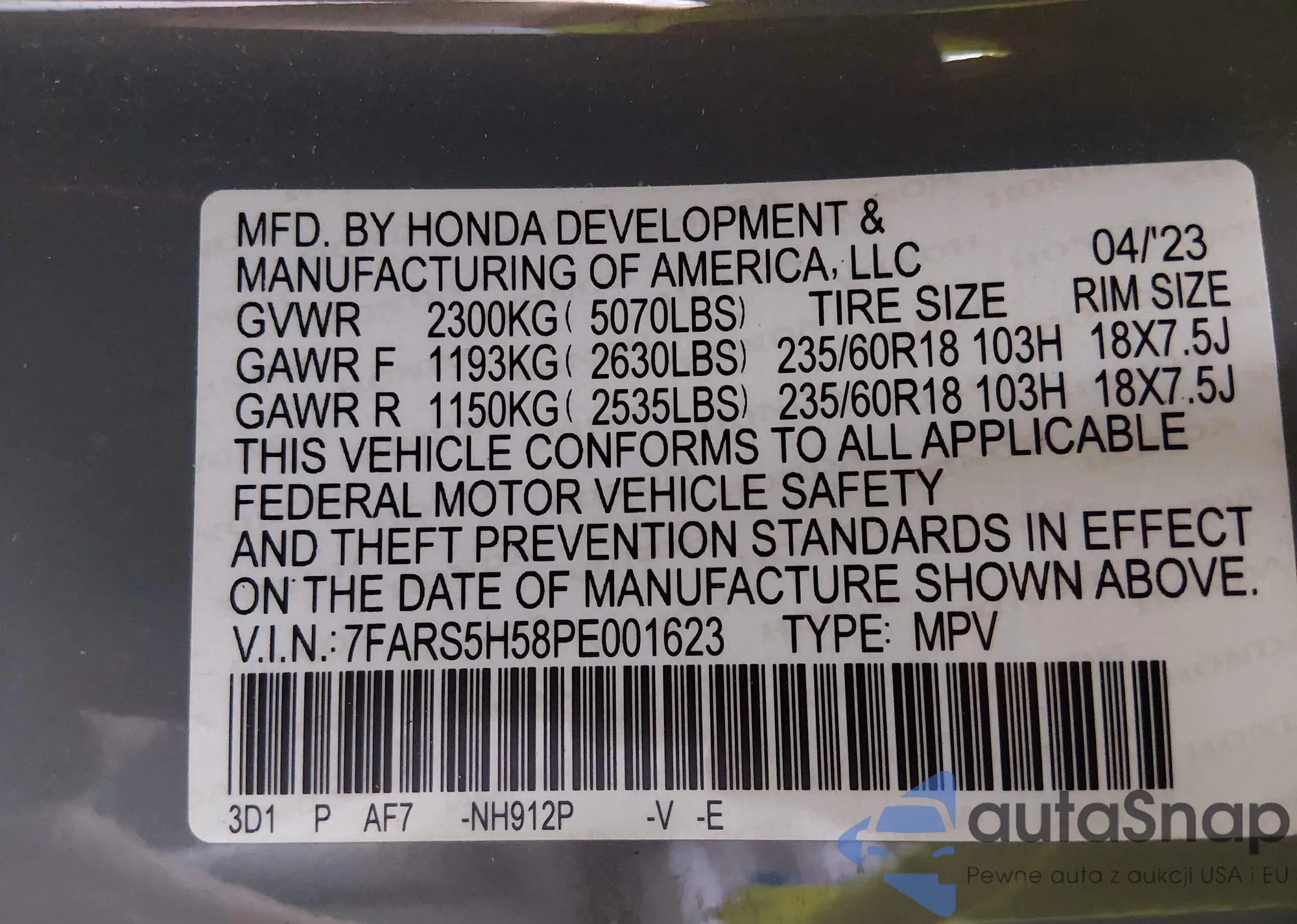 Автомобиль Honda CR-V 2023 (VIN 7FARS5H58PE001623) ранее не участвовал в торгах. Документы чистые, пробег соответствует или ниже среднего по рынку. Продаётся страховой компанией — рекомендуем покупку. Доставка в порт займет около 6–8 недель.