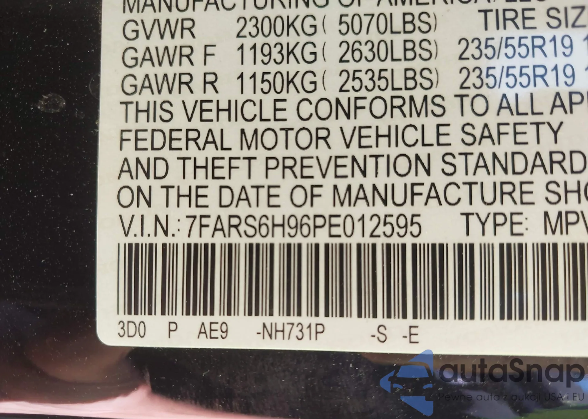 VIN: 7FARS6H96PE012595