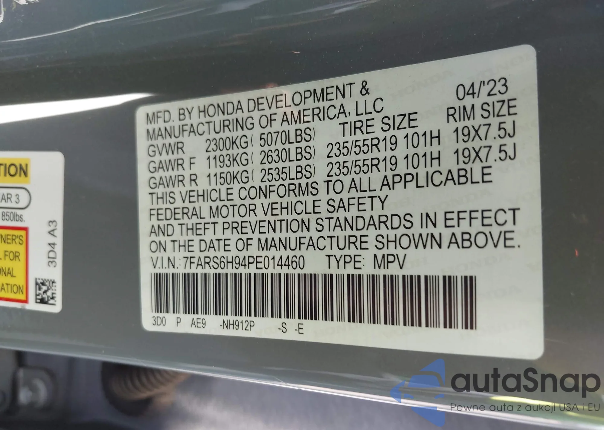Автомобиль Honda CR-V 2023 (VIN 7FARS6H94PE014460) ранее не участвовал в торгах. Документы чистые, пробег соответствует или ниже среднего по рынку. Продаётся страховой компанией — рекомендуем покупку. Доставка в порт займет около 6–8 недель.