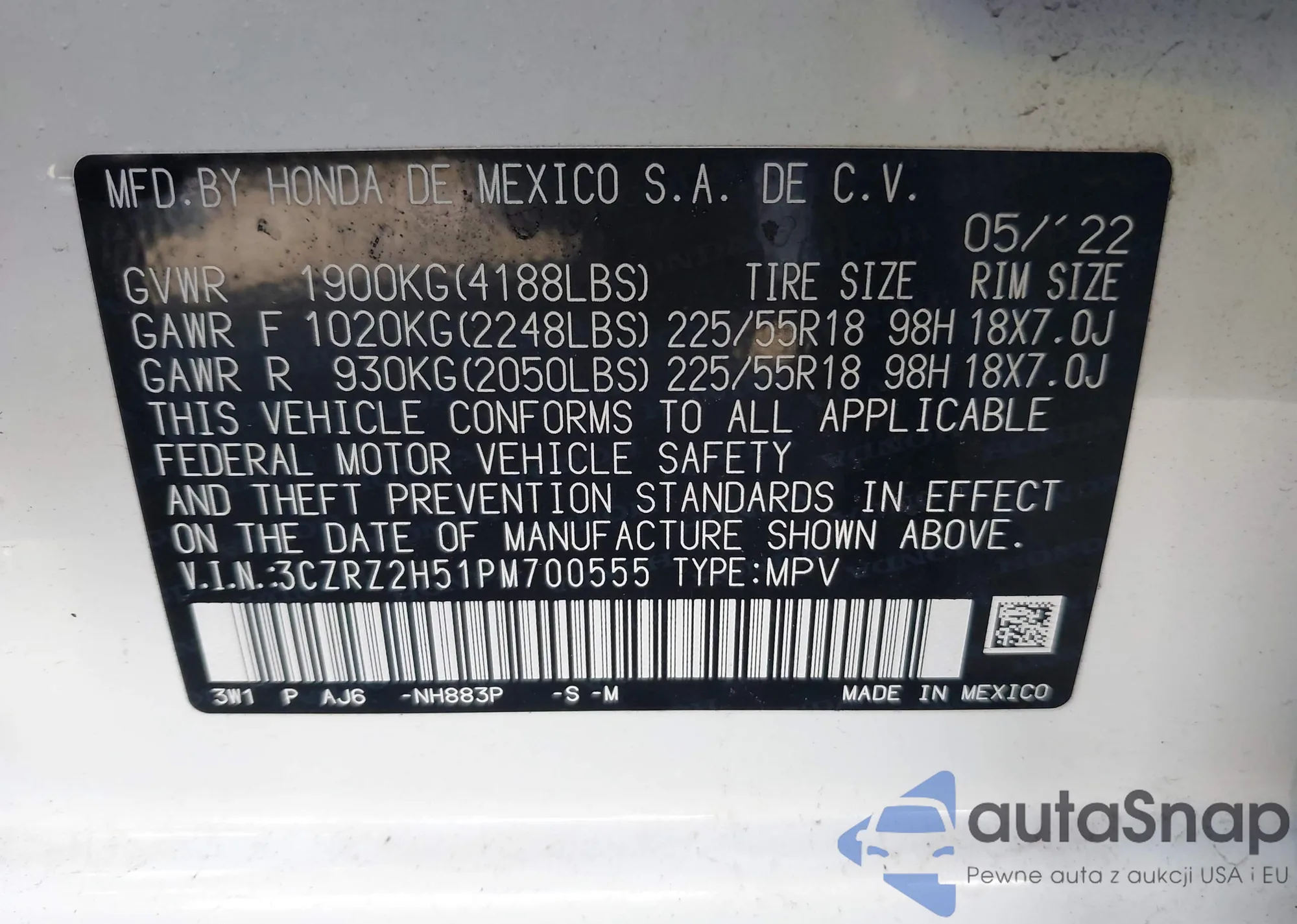 VIN: 3CZRZ2H51PM700555