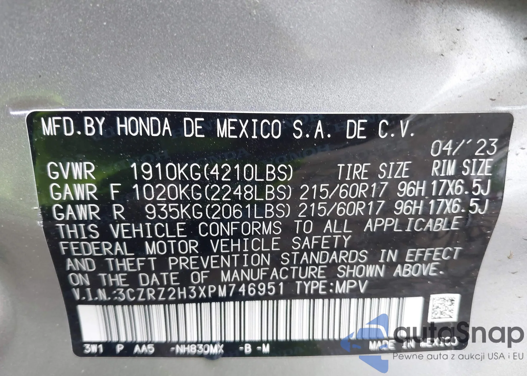 • VIN: 3CZRZ2H3XPM746951