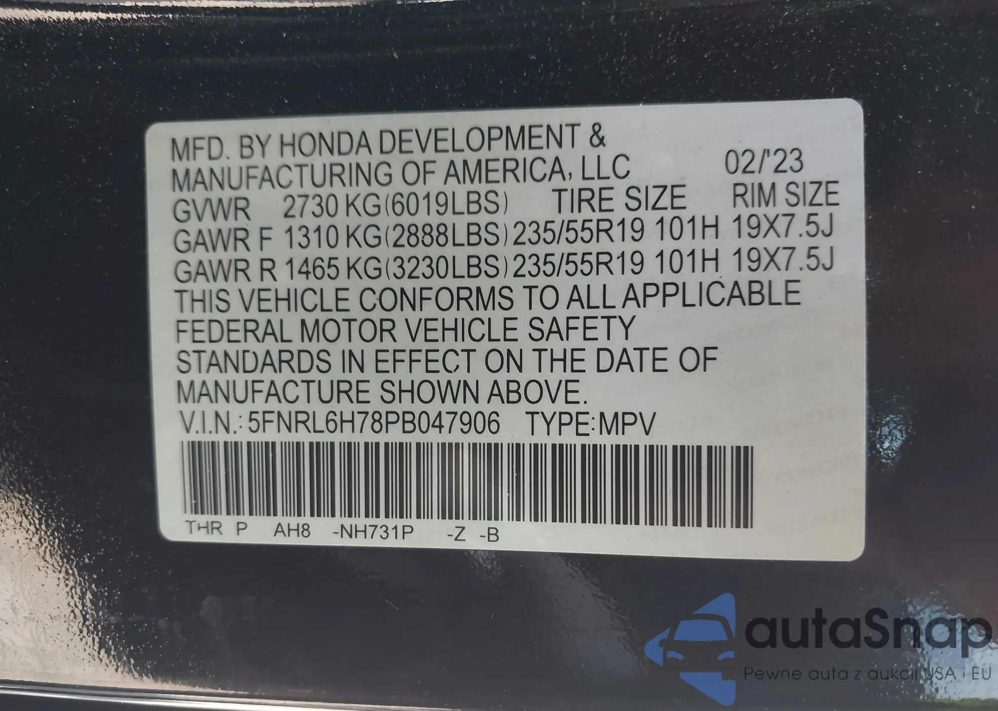 VIN: 5FNRL6H78PB047906