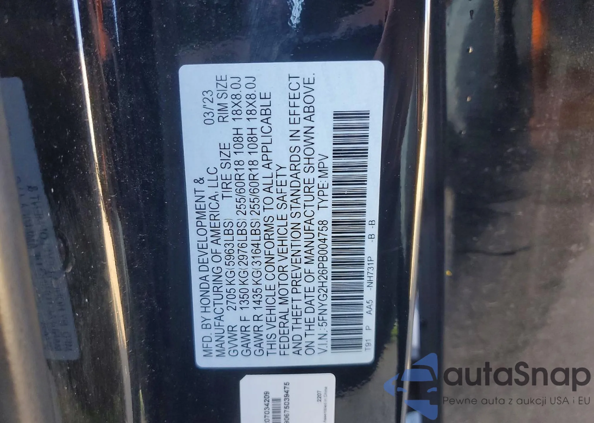 Автомобиль Honda Pilot 2023 (VIN 5FNYG2H26PB004758) ранее не участвовал в торгах. Документы чистые, пробег соответствует или ниже среднего по рынку. Продаётся страховой компанией — рекомендуем покупку. Доставка в порт займет около 6–8 недель.