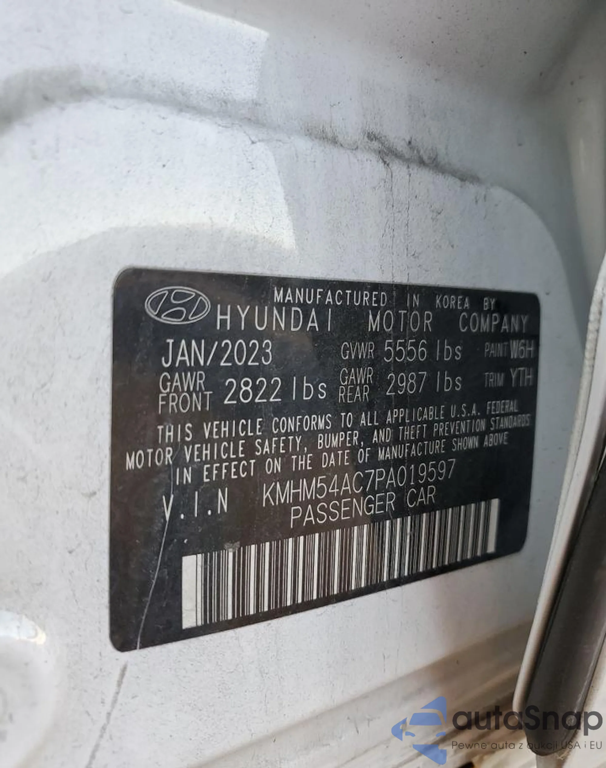 Автомобиль Hyundai IONIQ 6 2023 (VIN KMHM54AC7PA019597) имеет документы, препятствующие регистрации. Могут возникнуть сложности при экспорте и регистрации. Обратитесь к экспертам AutaSnap для поиска альтернатив.