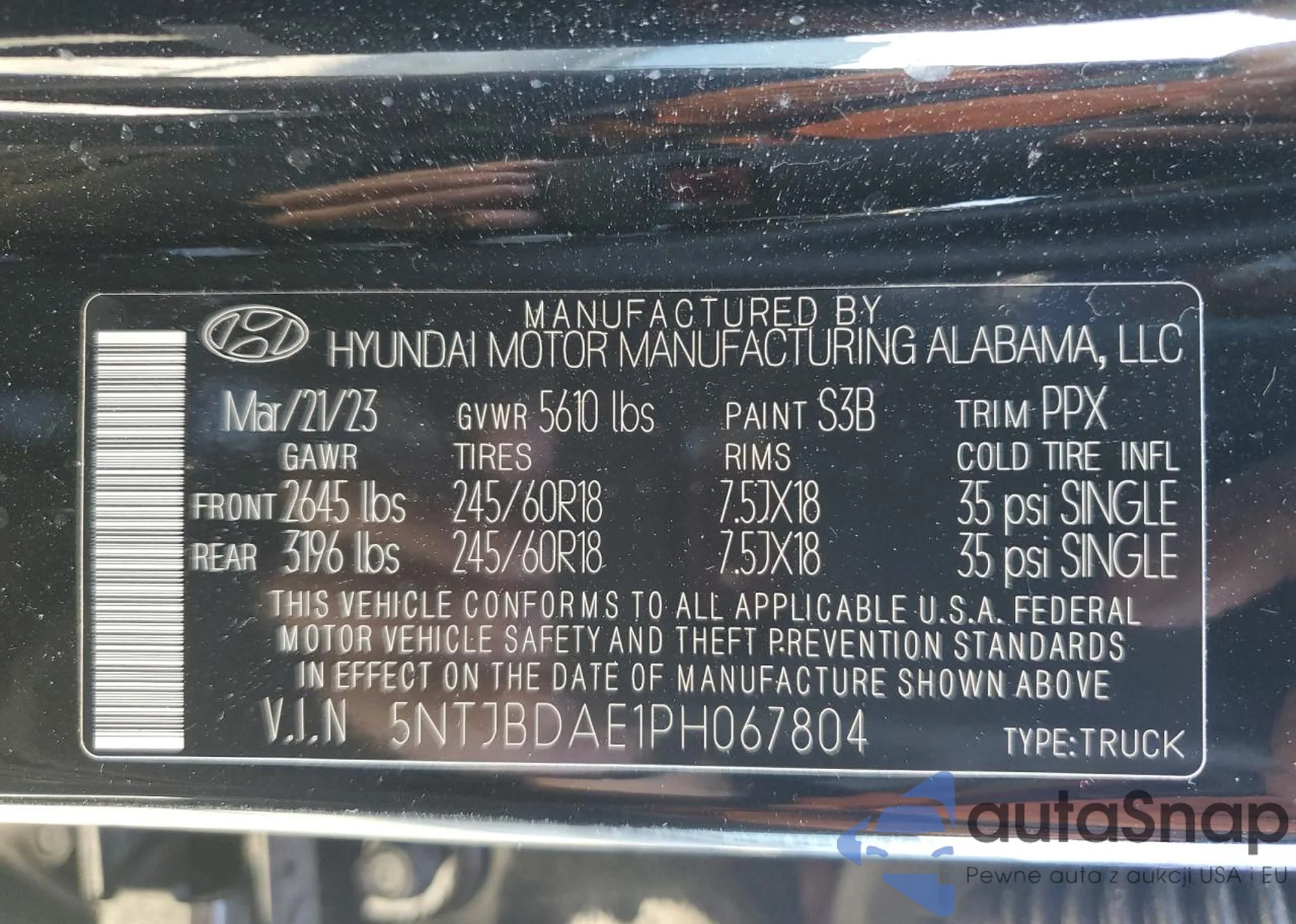 VIN: 5NTJBDAE1PH067804