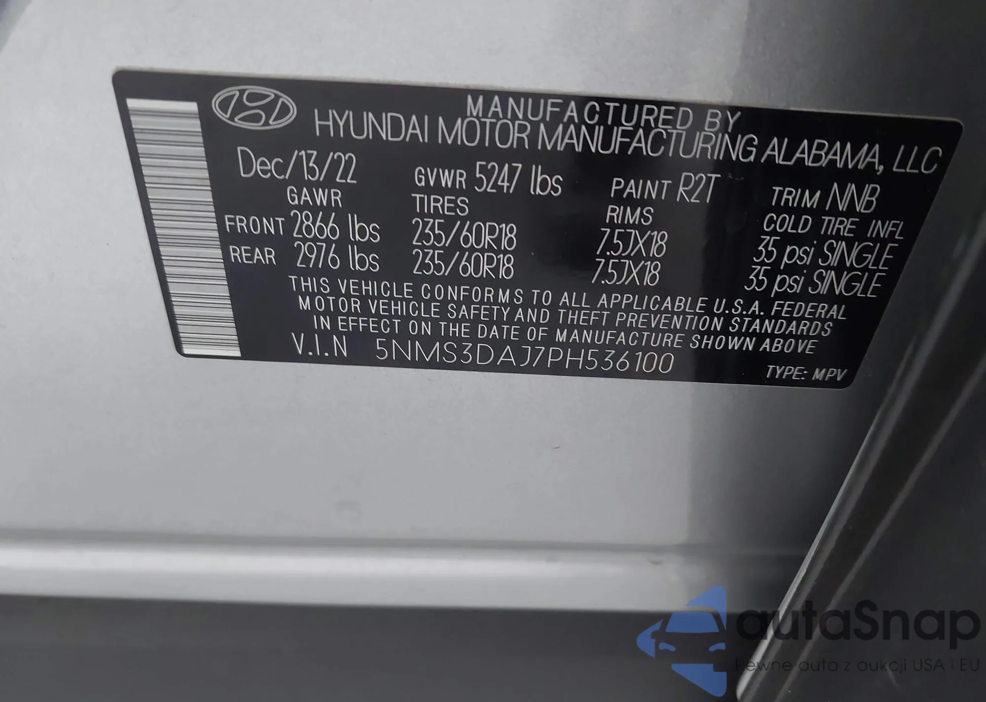VIN: 5NMS3DAJ7PH536100