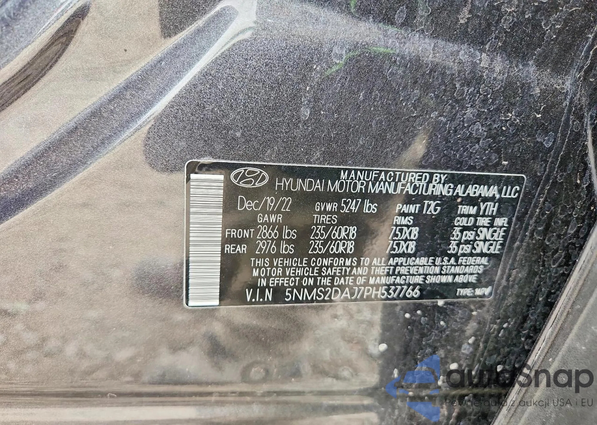 VIN: 5NMS2DAJ7PH537766
