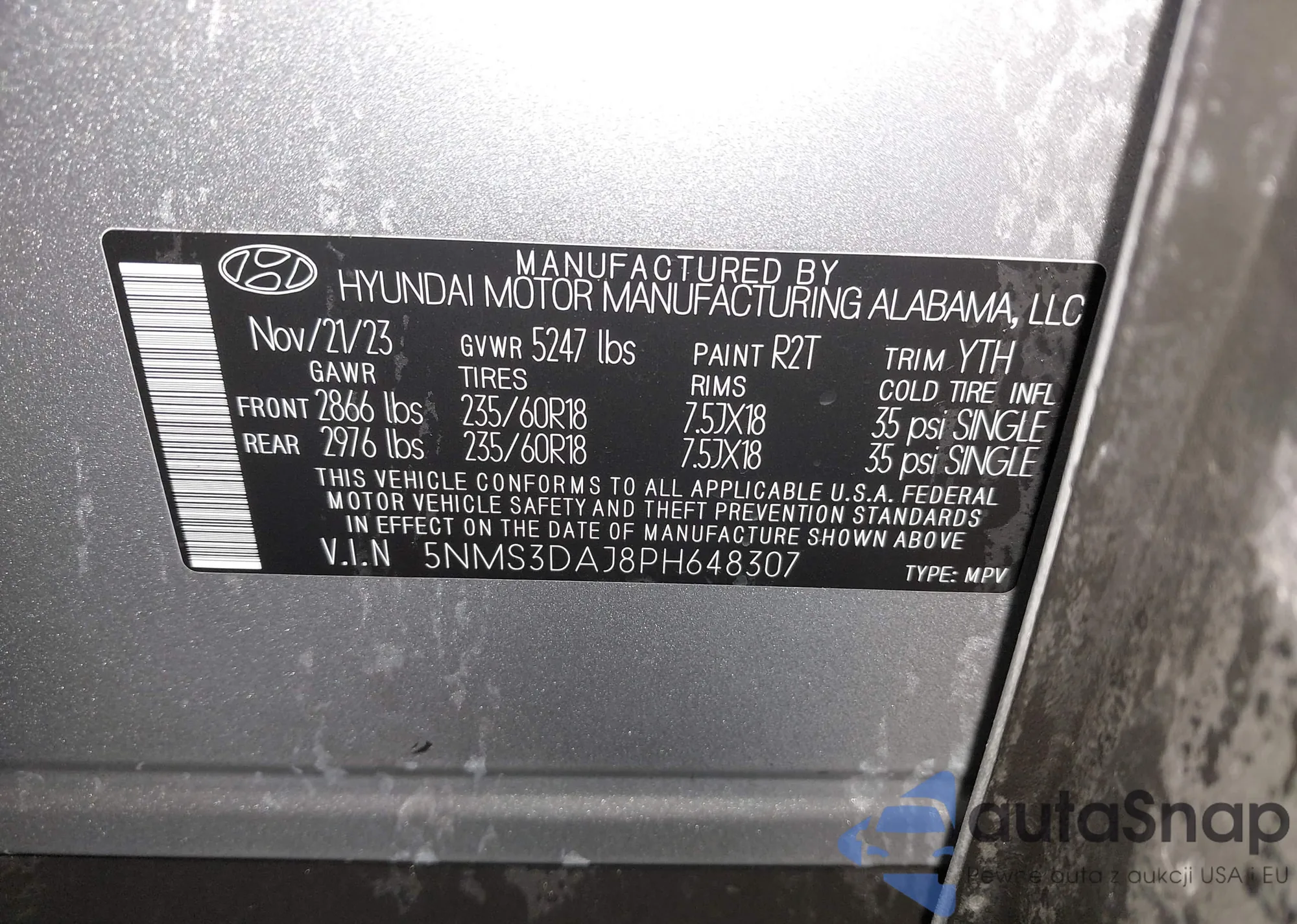 VIN: 5NMS3DAJ8PH648307
