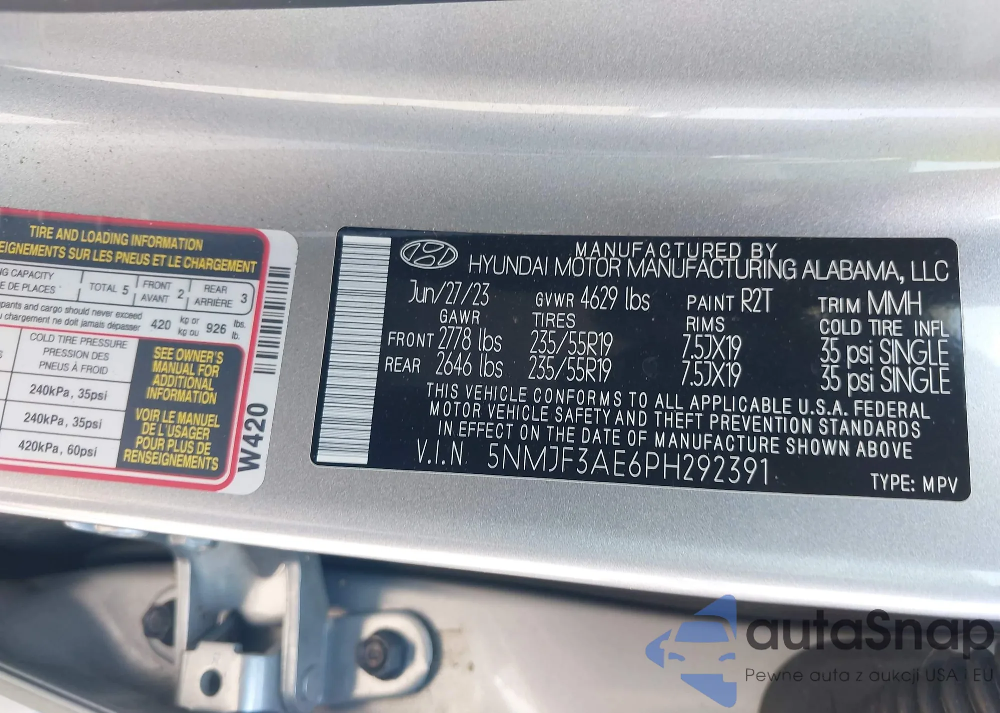 VIN: 5NMJF3AE6PH292391