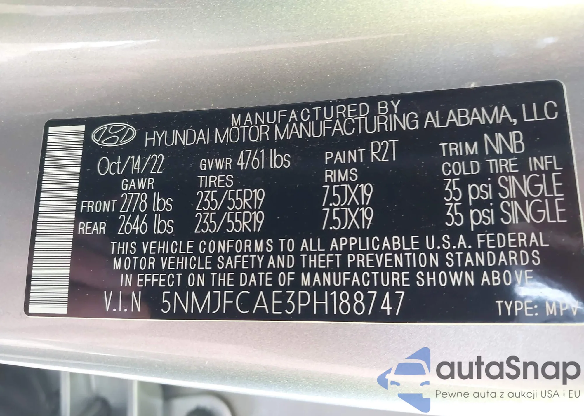 VIN: 5NMJFCAE3PH188747